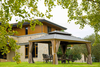 AeroEave Outdoor Cedar Wooden Hardtop Gazebo with Pitched Galvanized Steel Roof