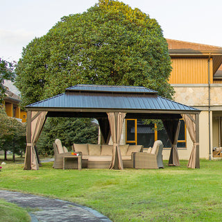 Aetherdome 12x16 FT Aluminum Hardtop Gazebo with Double Roof, Curtains & Netting