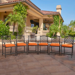 6-Piece Cast Aluminum Bar Dining Chairs Set – Antique Bronze, Curved Back & Diamond Mesh Design