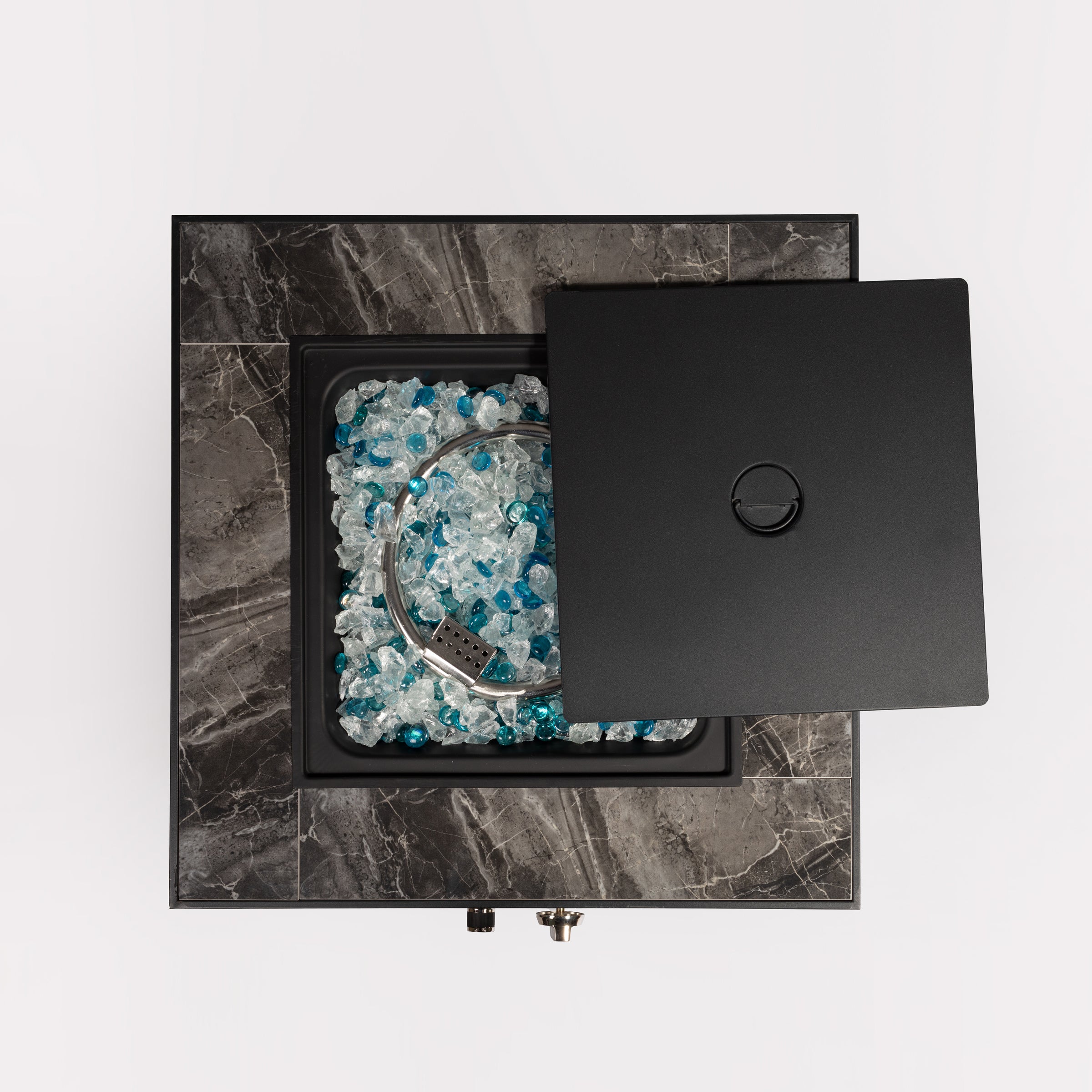 • Luxurious Contrast of Modern and Natural: Elevate your outdoor space with a striking blend of sophistication and rustic charm. The sleek marble-patterned tile tabletop exudes contemporary elegance, while the handwoven PE wicker body adds organic texture. The vibrant blue glass beads encircle the stainless steel burner, creating a mesmerizing visual contrast as flames dance atop them. Industrial-grade materials meet artisanal craftsmanship for a high-end yet inviting centerpiece.