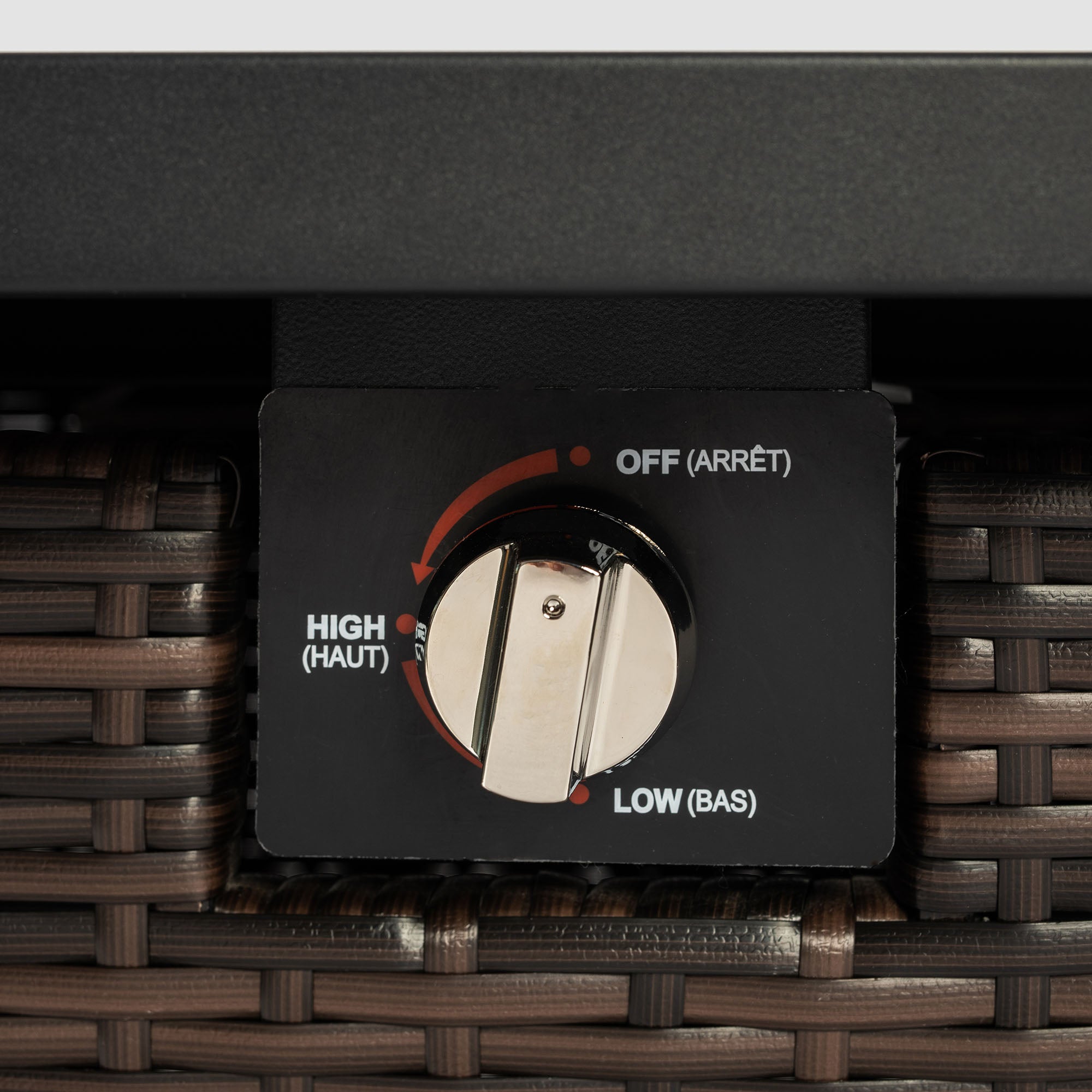 This outdoor gas fire pit is equipped with an advanced electronic ignition system. There's no need for cumbersome procedures. With a simple press, the flame can be instantly ignited, eliminating the inconvenience and potential safety hazards of traditional ignition methods. It features a two - level fire - power adjustment knob, clearly marked "LOW (BAS)" (low - gear) and "HIGH (HAUT)" (high - gear). When adjusted to the low - gear, the flame is gentle, creating a warm and quiet atmosphere, which is ideal for moments of leisurely solitude or quiet conversations. When turned to the high - gear, the flame becomes vigorous, releasing more heat and meeting the heating needs of large gatherings. With simple operations, you can easily control the size of the flame, adding comfort and coziness to your outdoor time.