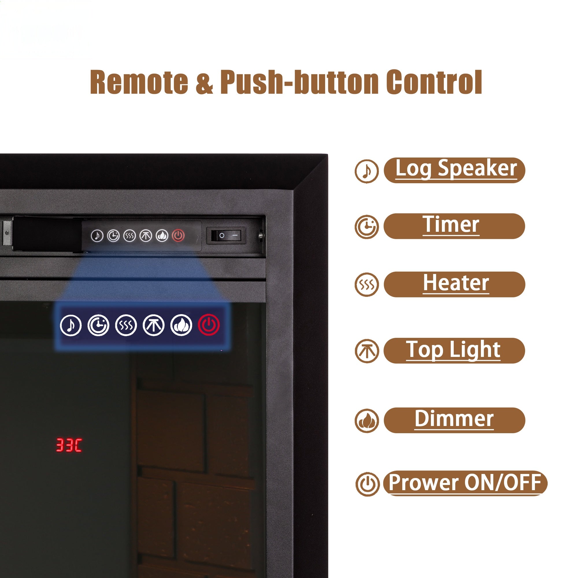 • [TWO CONTROL MODES] Remote and push button control make it easy to customize the color, and brightness, or set the timer. This recessed electric fireplace can be wall-recessed or wall-mounted. Easy to operate and assemble.