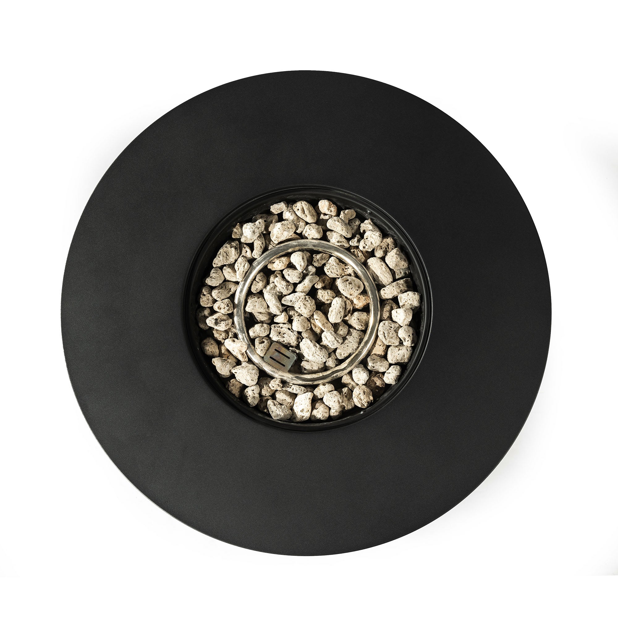 This black - hued fire pit features volcanic stones. Their varied, porous forms are a nod to nature's raw beauty. Functionally, the stones' porosity ensures even gas spread, enabling stable, thorough flame combustion. It's a perfect blend for a warm, inviting outdoor vibe.