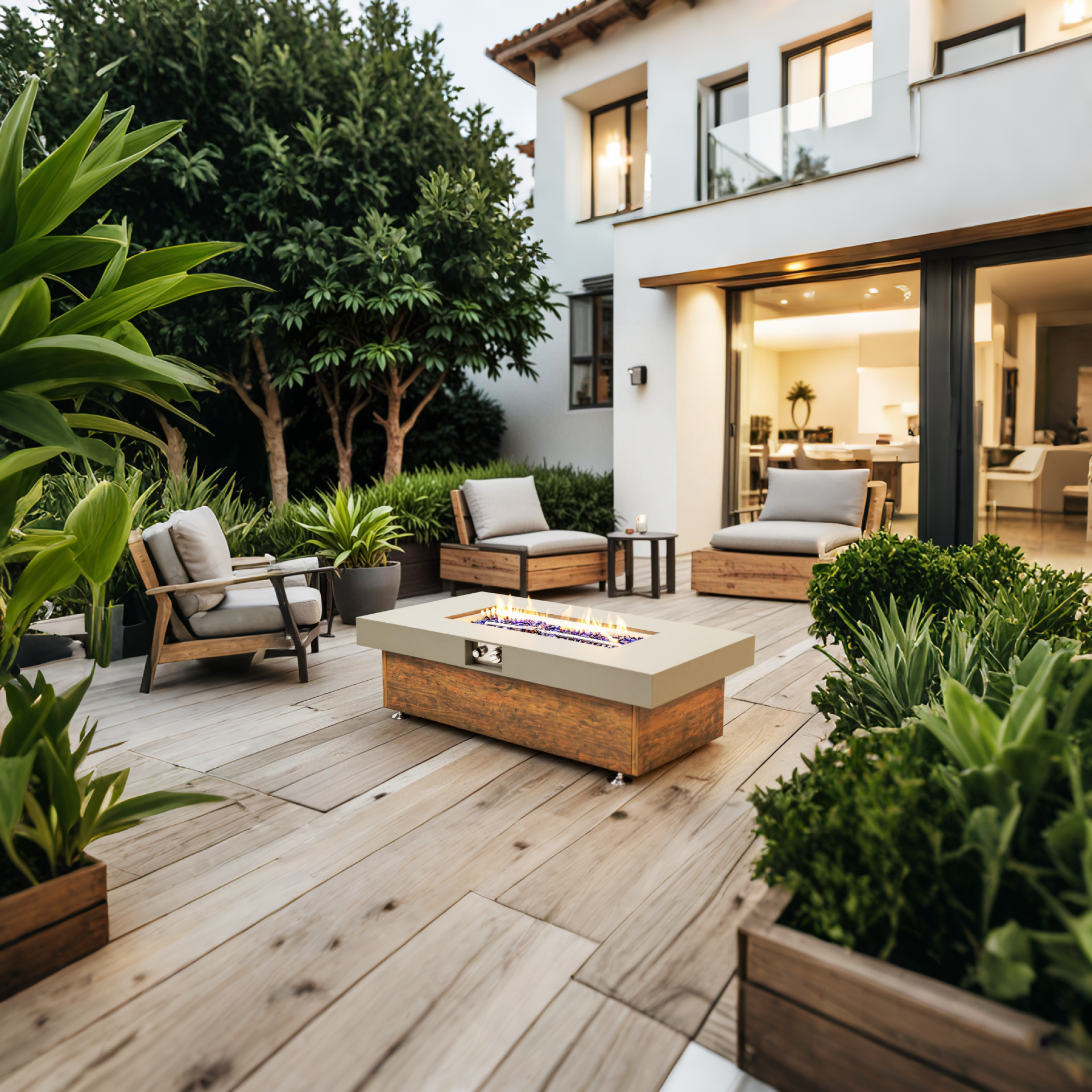 • Modern Design & Durable Construction: Featuring a sleek, contemporary design with stone or walnut wood finish options, this outdoor fire table combines elegance and functionality. Built with a robust stainless steel burner bowl for low maintenance and heat resistance.