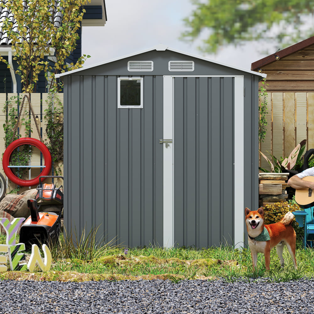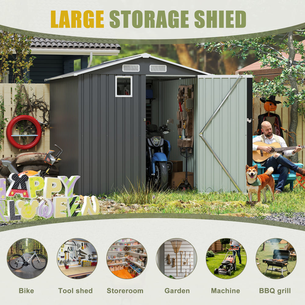 6x8 FT Outdoor Steel Storage Shed with Clear Window, Lockable Doors, Compact Metal Tool Shed for Garden, Backyard, Patio, Utility, and Bike Storage,Yellow/Grey