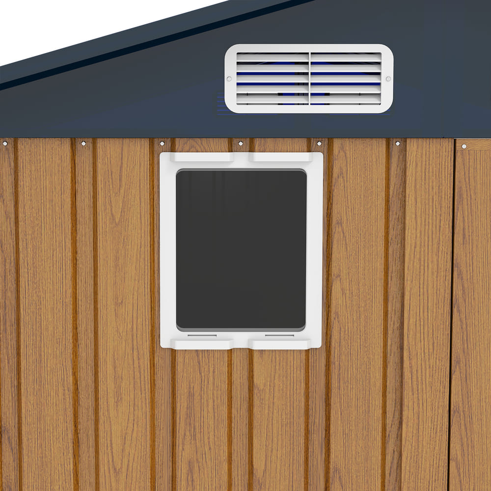 • Four Louver Vents Promote Air Circulation And keep Items DryAnti-collision ProtectionClear Window IncludeStainless Steel Bolt LockFour ventilation windows