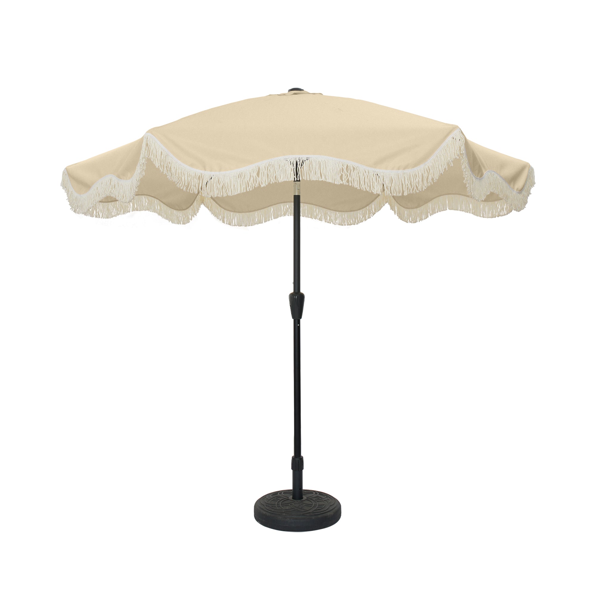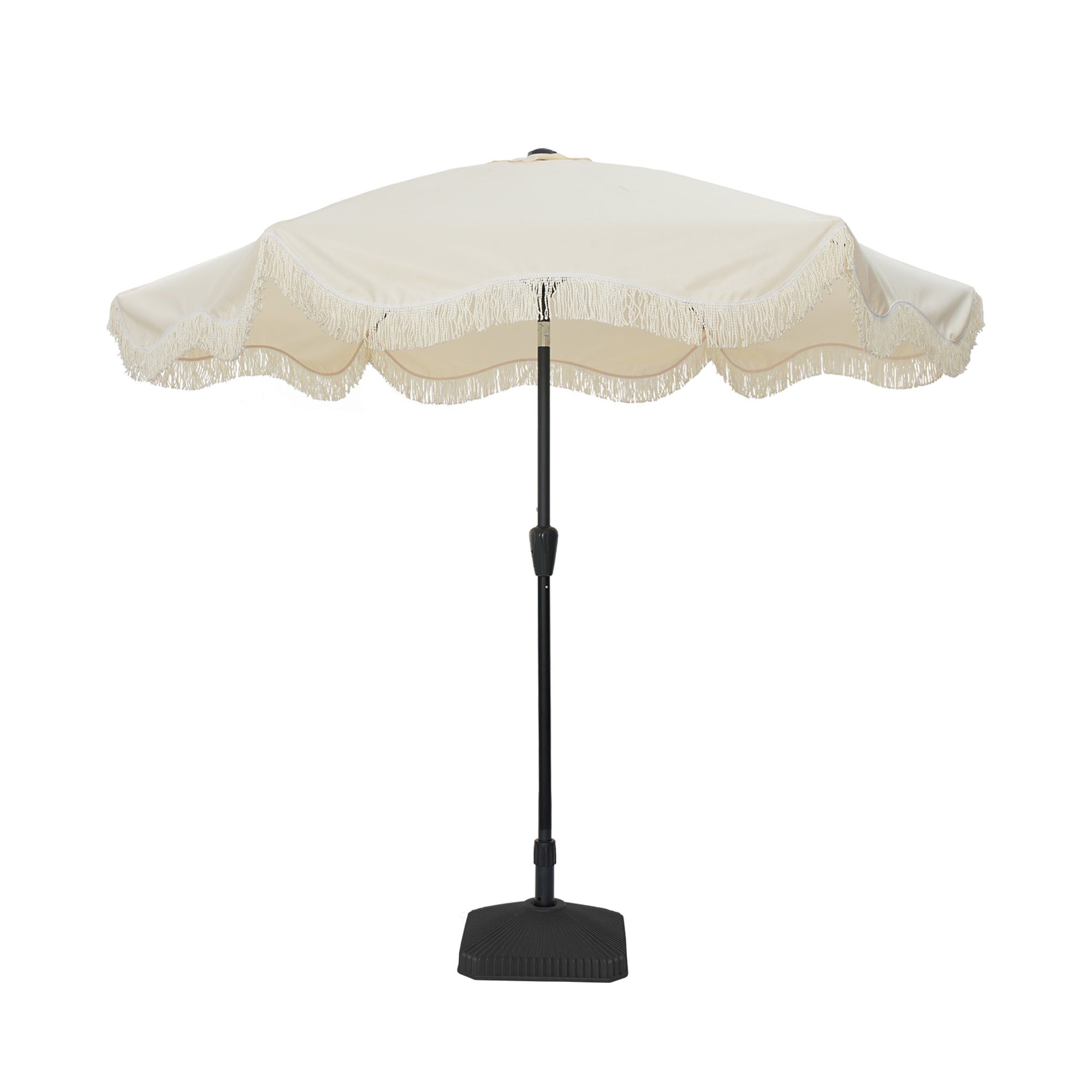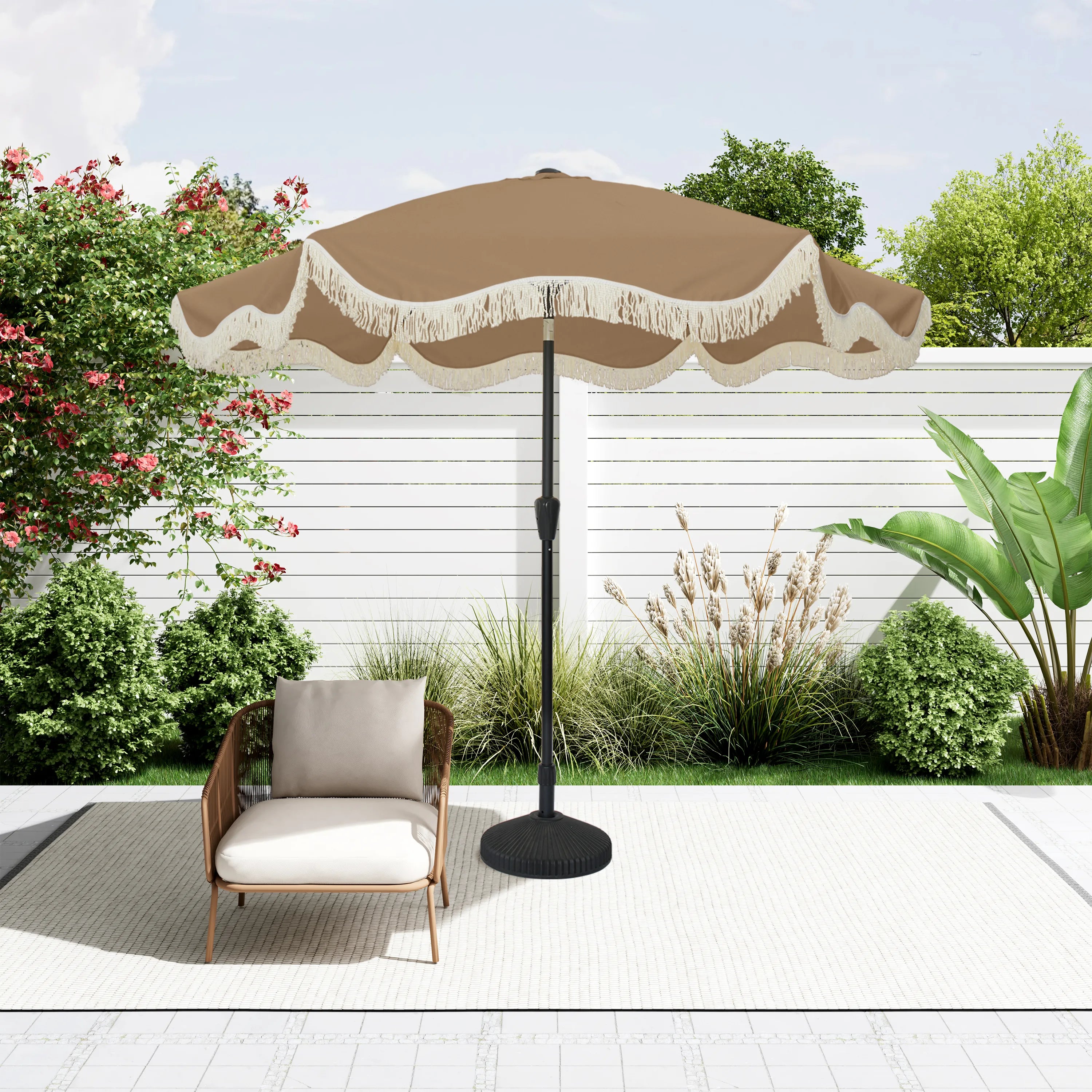 9 FT Tassel Market Patio Umbrella with Full Fiberglass Rib in Cream/Beige/Tan