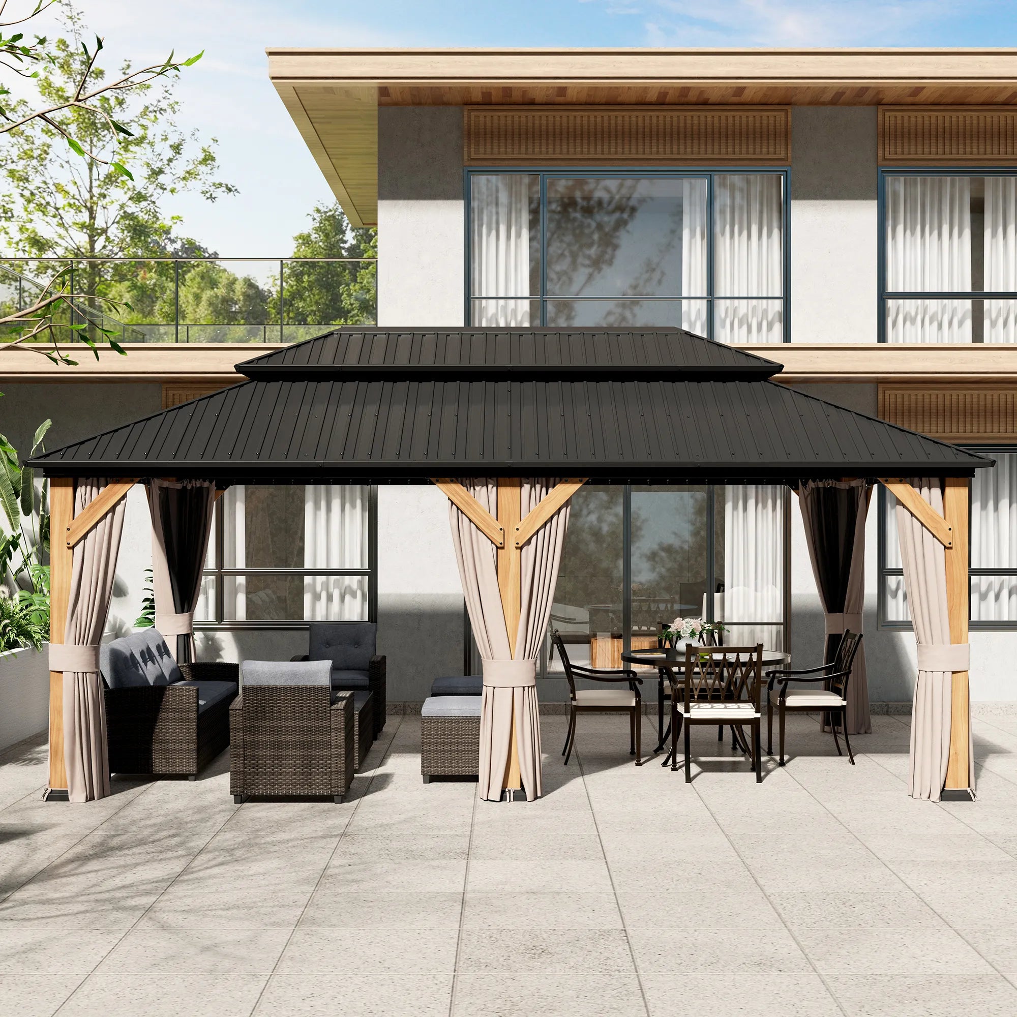 • This 12' x 20' Cedar Wood Frame Gazebo creates the perfect outdoor setting for any time of the year. It's the perfect place to entertain family and friends, thus expanding your living space. Enjoy gatherings outside in all seasons under a fir solid wood frame, and the sturdy fade-resistant and rust-resistant galvanized steel canopy will stand the test of time.