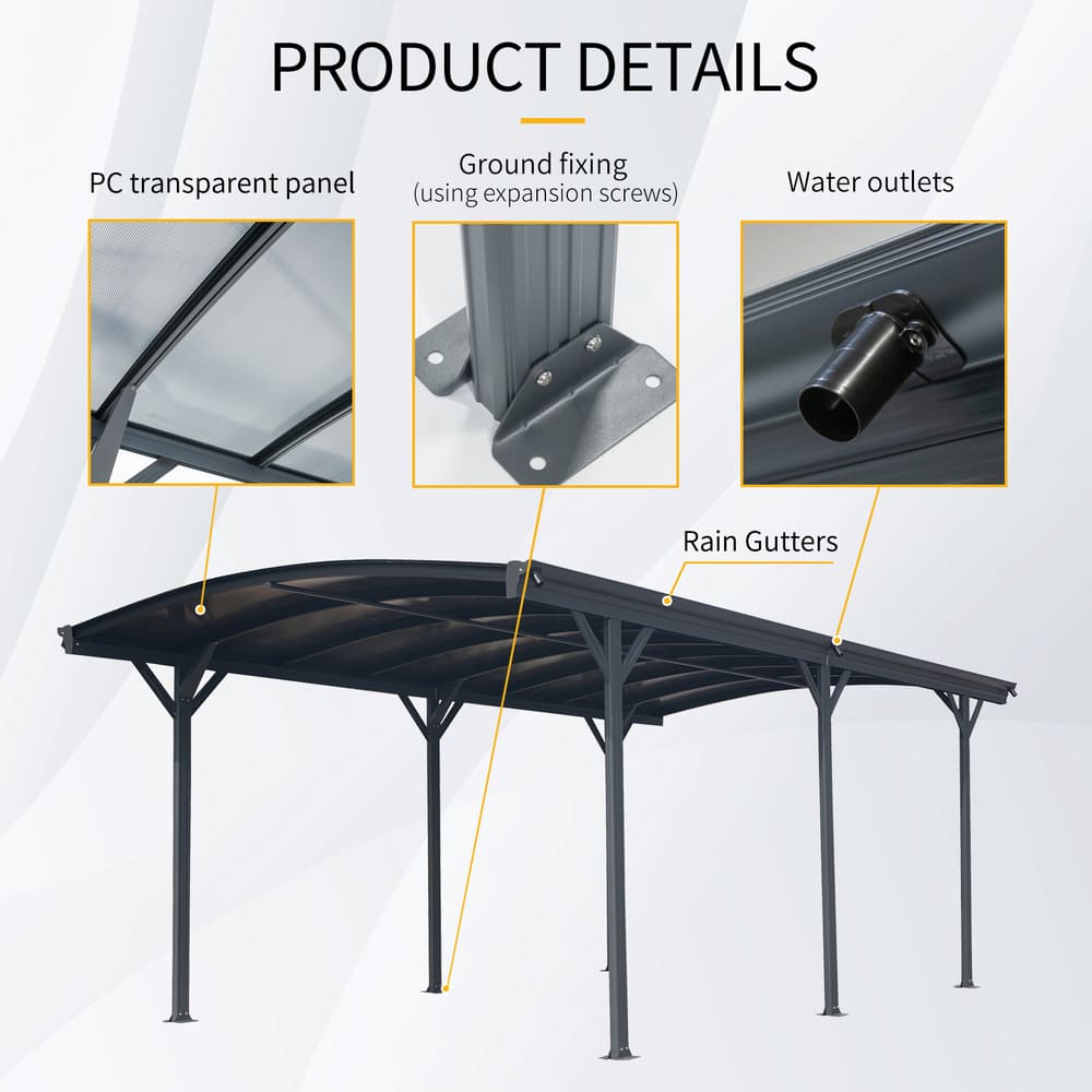 • Large-Sized Arched Roof Design: Measuring 10 FT * 19 FT* 7 FT, it provides ample covered parking space. The arched roof enhances wind and snow load resistance while ensuring efficient water drainage.