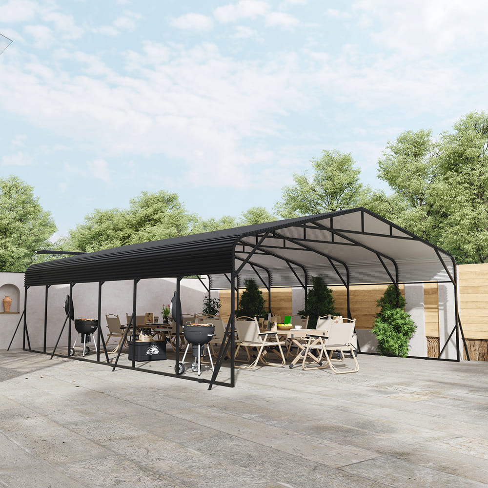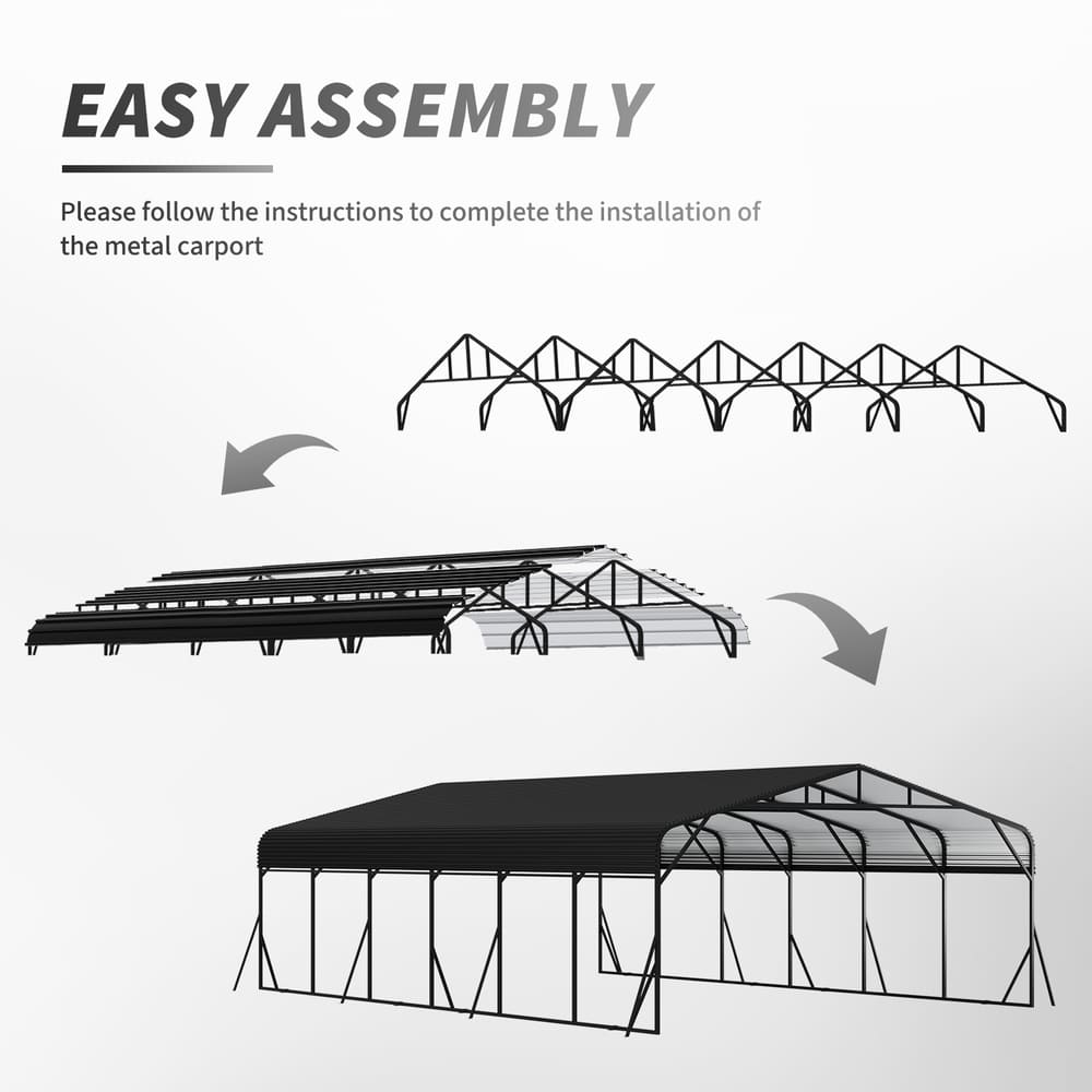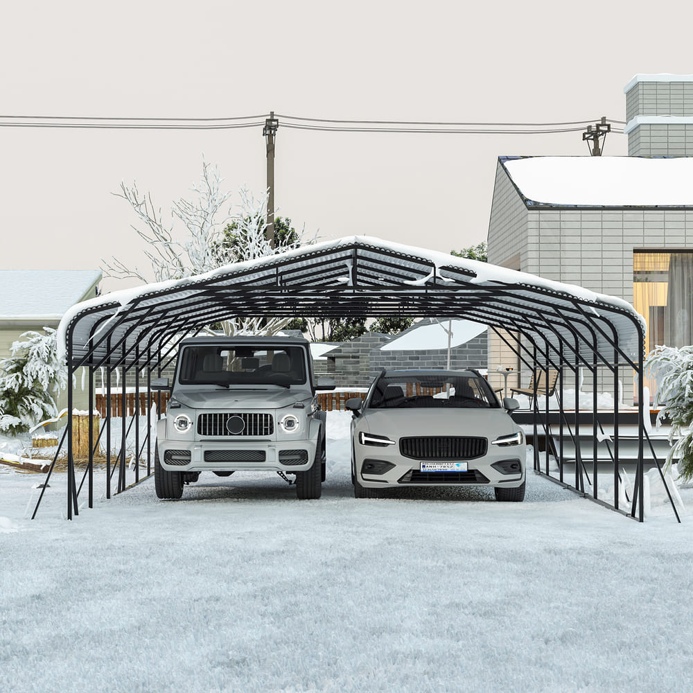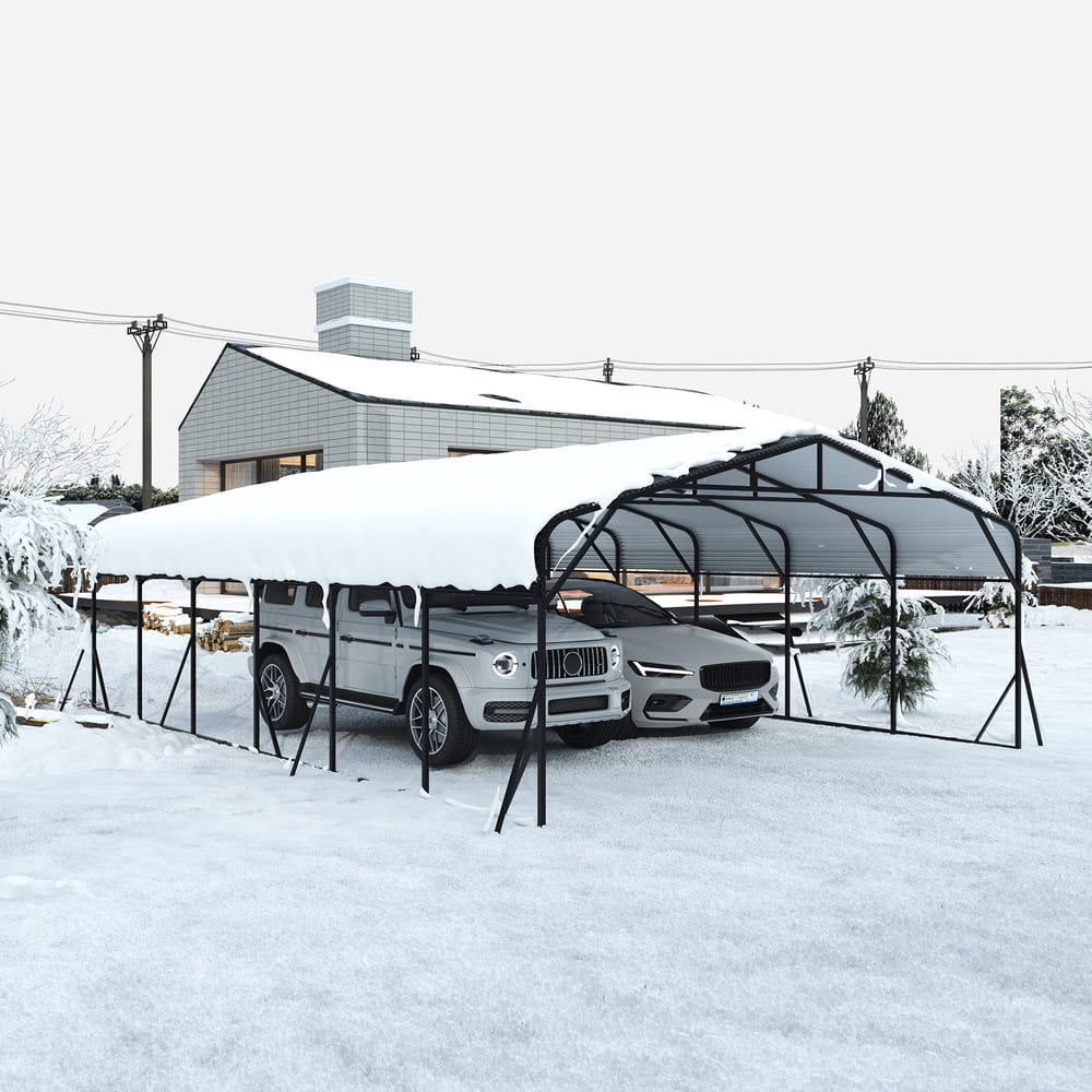 • [Durable & All-Season Metal Car port] This heavy-duty carport features a galvanized steel frame and high-strength steel roof to handle tough weather. Car port rust-resistant build, waterproof sealing, and high-peak design offer excellent protection from rain, wind, and snow. Ideal for car, RV, pickup,truck, boat, tractor, ATV and trailer, it provides dependable, all-weather coverage