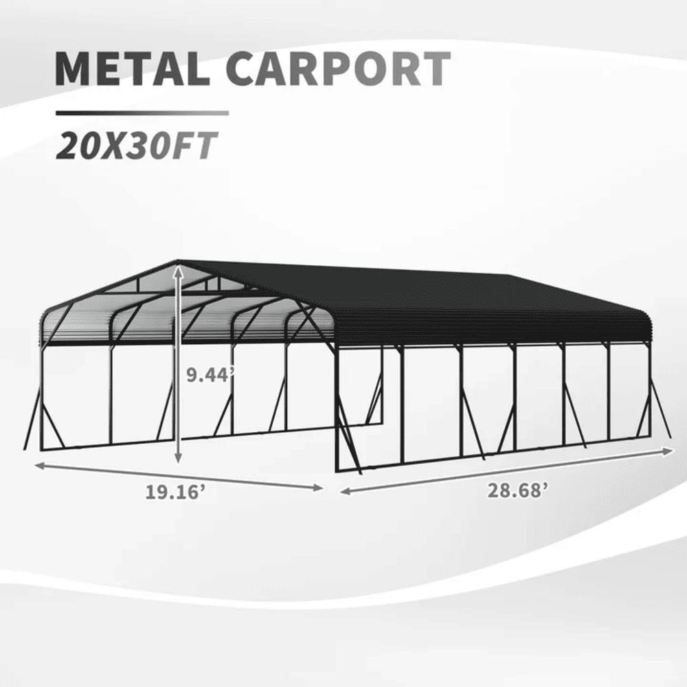 • [Spacious & Versatile Carport Design] Carports measuring 20x30x9.3 ft, this metal carport offers ample space for vehicles, equipment, or outdoor events. Carports 20x30 heavy duty versatile design works as an RV cover, storage garage, or event canopy, adapting to your needs. Carports open, heavy-duty structure ensures easy access and comfortably fits taller vehicles