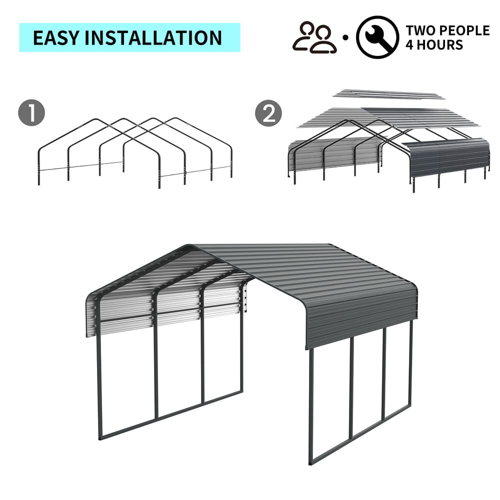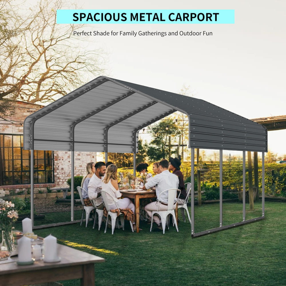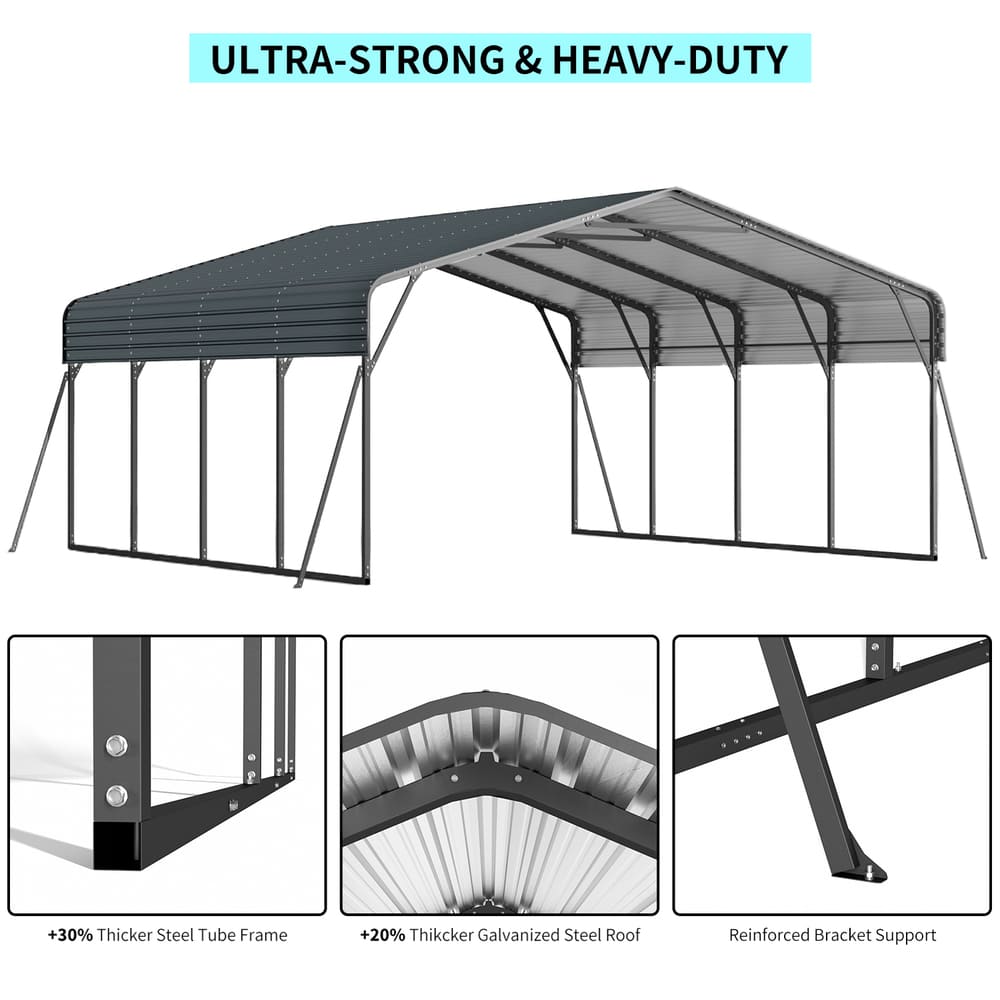 Metal Carport Heavy Duty with Galvanized Steel Roof, Outdoor Garage Car Shelter Shade for 2 Cars, Boats and Truck