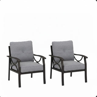 Set of 2 28" All-Weather Metal Patio Armchairs with Thick Gray Cushions & Gray Frame