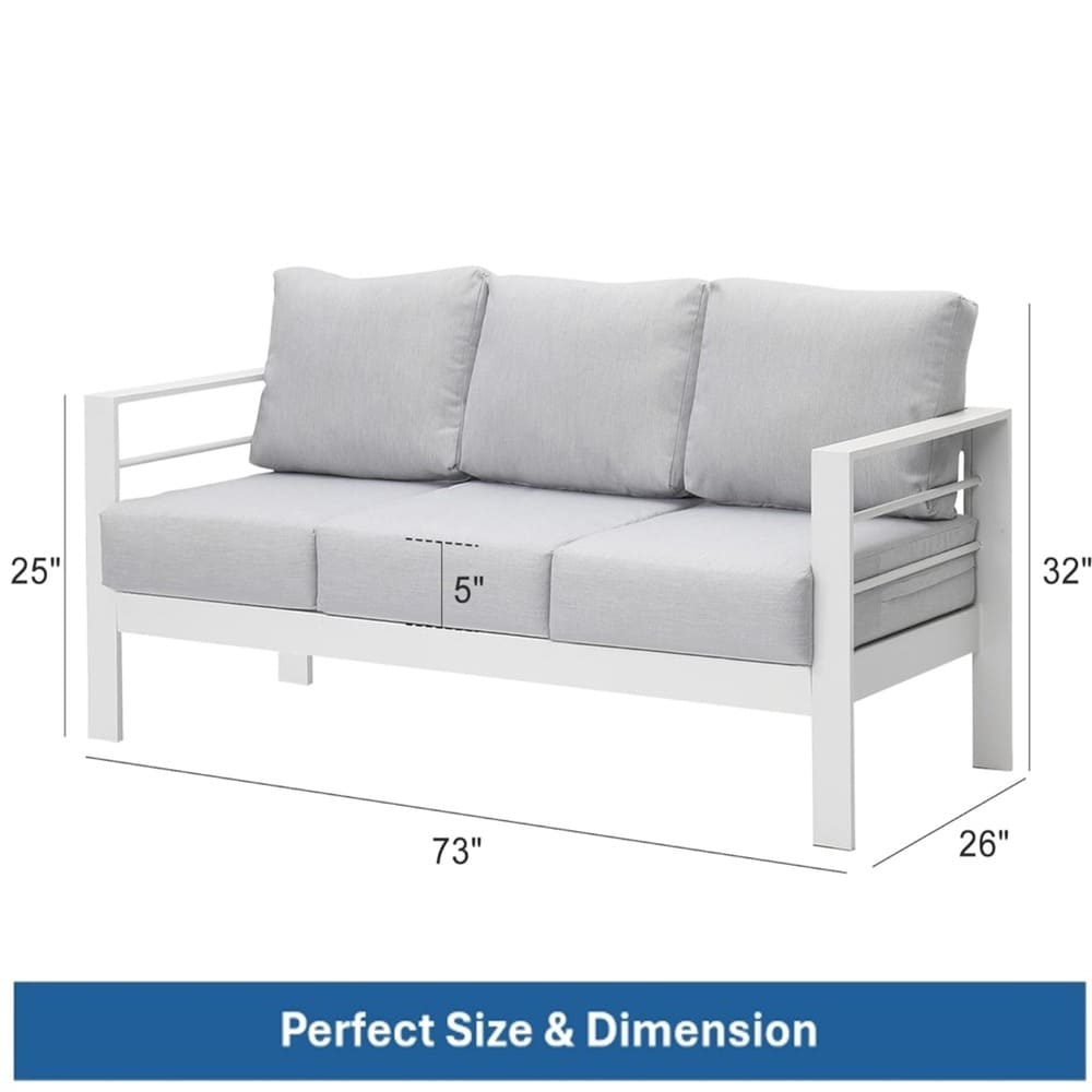 73" All-Weather Aluminum Patio Sofa, 3 Seat Outdoor Couch with Thick Cushions & Frame