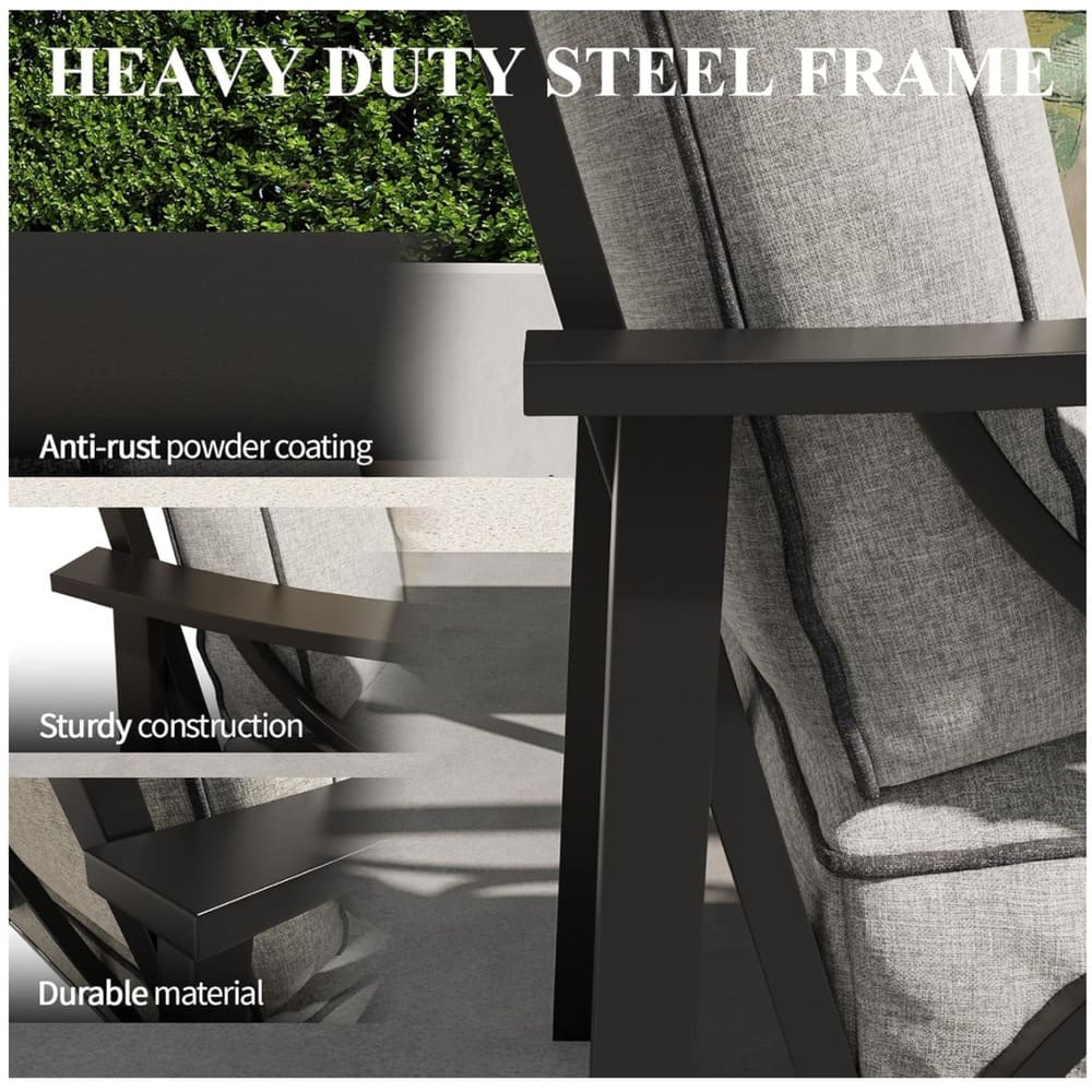 • With spacious 26" width and clean minimalistic lines, these chairs make a bold statement while offering practical durability and long-lasting appeal. Quick assembly with clear instructions and included hardware. Ideal for couples, solo loungers, small-space dwellers, apartment residents, Airbnb hosts, and anyone seeking premium, low-maintenance outdoor seating that combines eye-catching modern design with superior comfort and weatherproof reliability for year-round enjoyment.