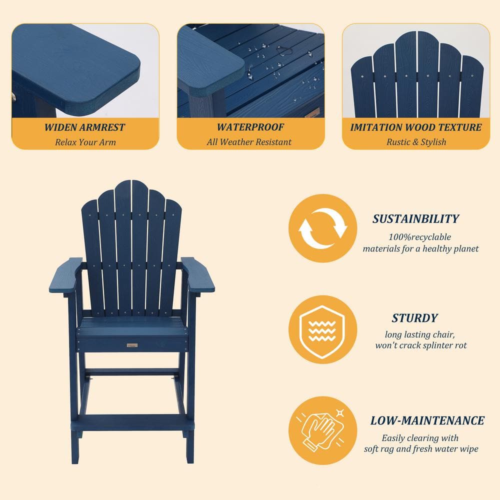 Add traditional charm to your front porch with the Clihome Patio Tall Adirondack Chair Set.This set includes 2 chairs and a center connecting table that can be easily removed for flexible use.Made with eco-friendly HIPS Polywood lumber and marine-grade hardware, it's durable and perfect for long-lasting outdoor enjoyment.