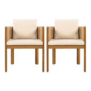 Acacia Wood Outdoor Dining Chairs 2-Pack with Mix White Rope Handles, Washable Waterproof Brown/Grey/Beige Cushions, 400 lbs Capacity