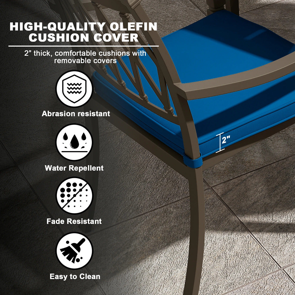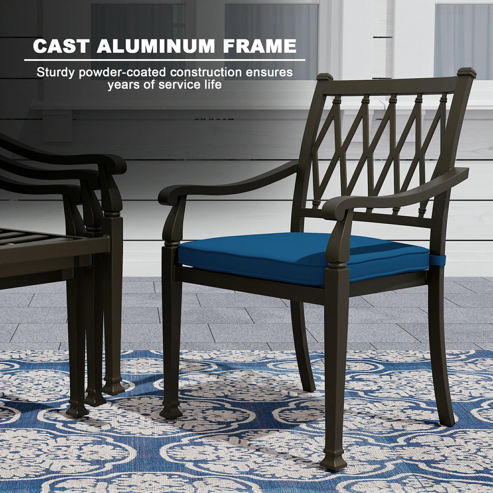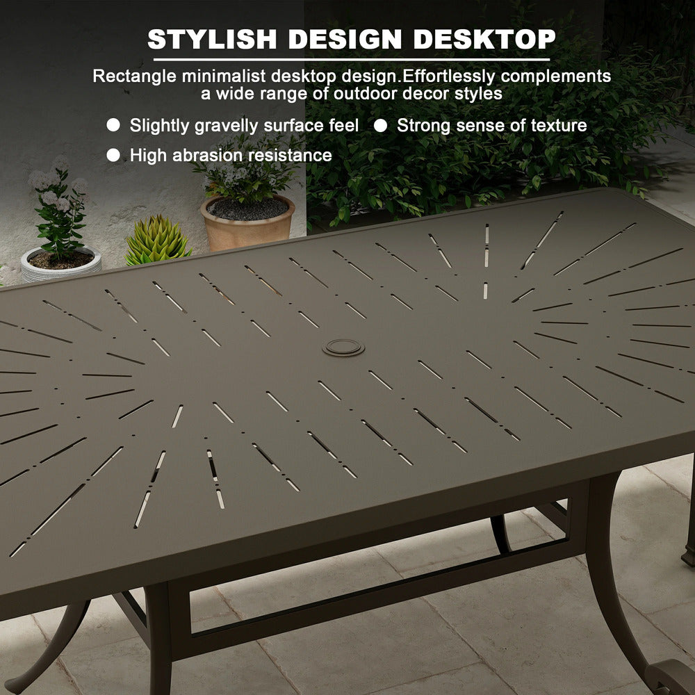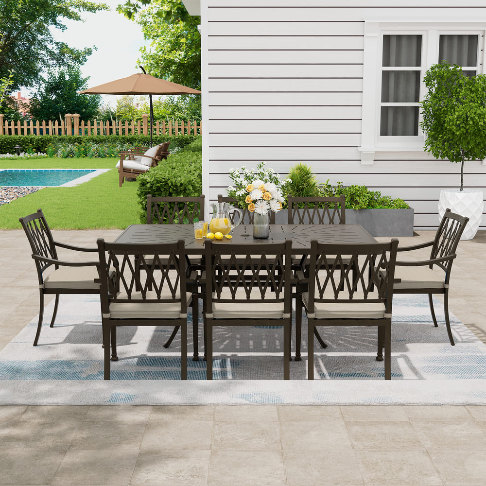 9-Piece Patio Dining Set – Cast Aluminum Rectangular Table & 8 Cushioned Chairs