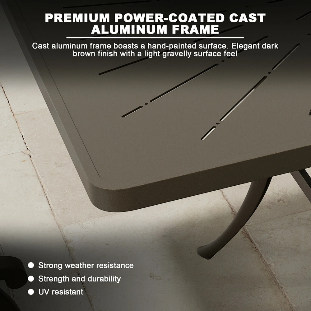 • Elegant and Weatherproof: Our tables are the epitome of outdoor sophistication, crafted from smooth-painted cast aluminum to endure the elements while adding a touch of class to your backyard bash.