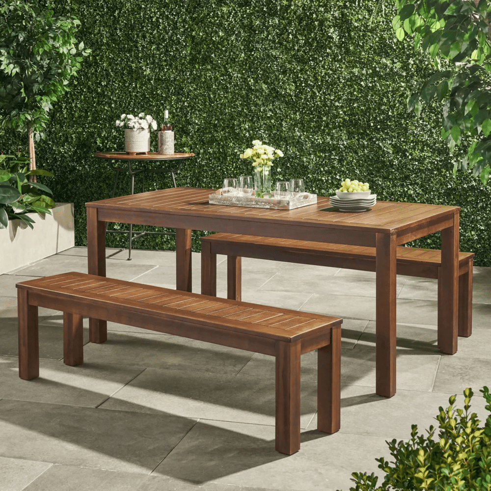 • Durable Acacia Wood Construction: Made from high-quality acacia wood, this outdoor table and bench set is highly durable and weather-resistant, built to last in various outdoor environments.