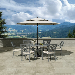 7-Piece Outdoor Dining Set with Cushions – Cast Aluminum Table & Chairs