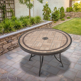 48 Inch Aluminum Round Patio Dining Table with Ceramic Tile Top & Umbrella Hole