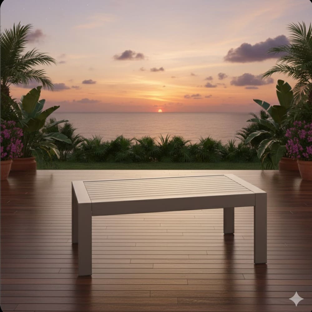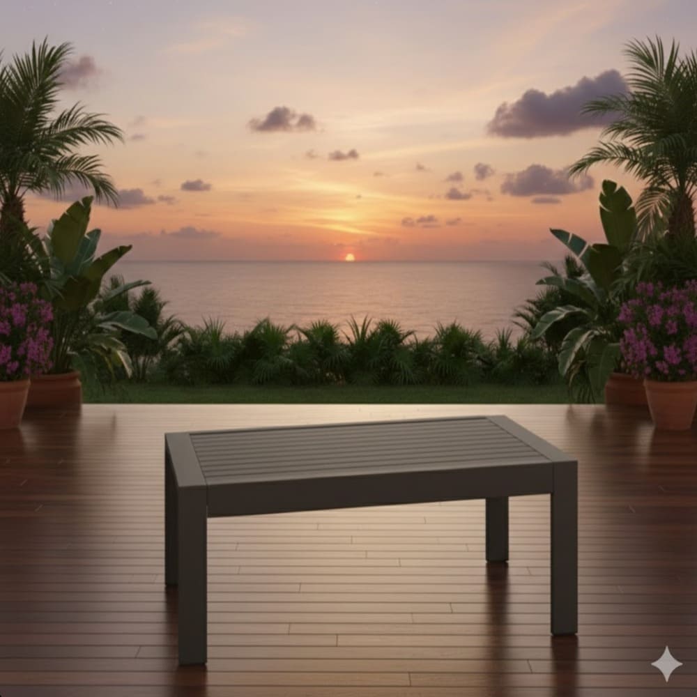 • With a generous 43" width × 24" depth surface and low 16" height, it offers plenty of room for drinks, snacks, books, plants, decor, or serving trays while pairing perfectly with patio sofas, sectionals, or lounge chairs. The clean, modern lines in neutral khaki tones complement any decor, seamlessly transitioning between indoor and outdoor spaces.