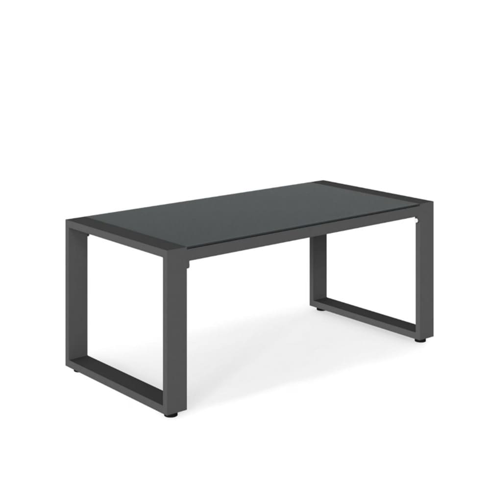 44" x 22" All-Weather Aluminum Outdoor Gray Coffee Table with Tempered Glass Top