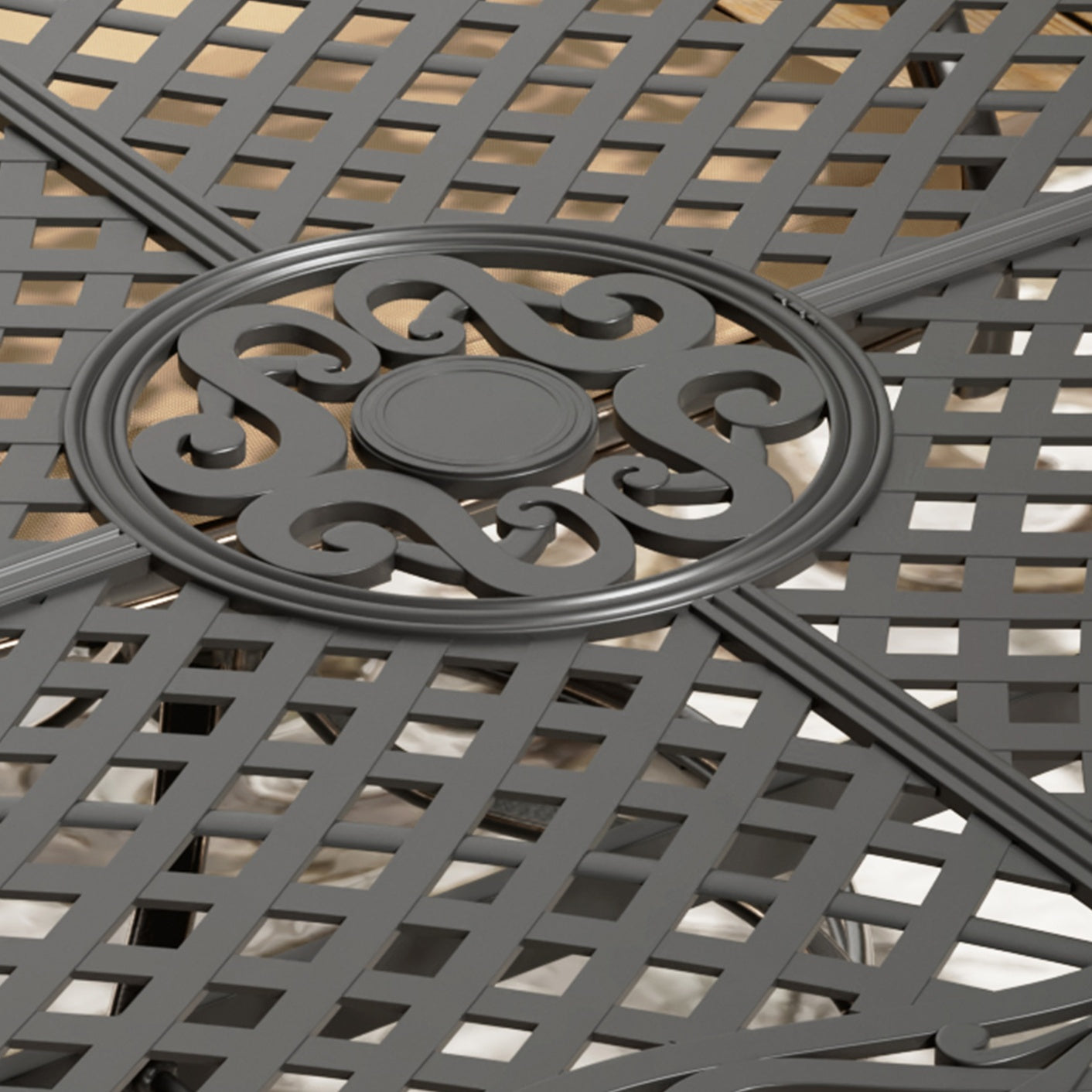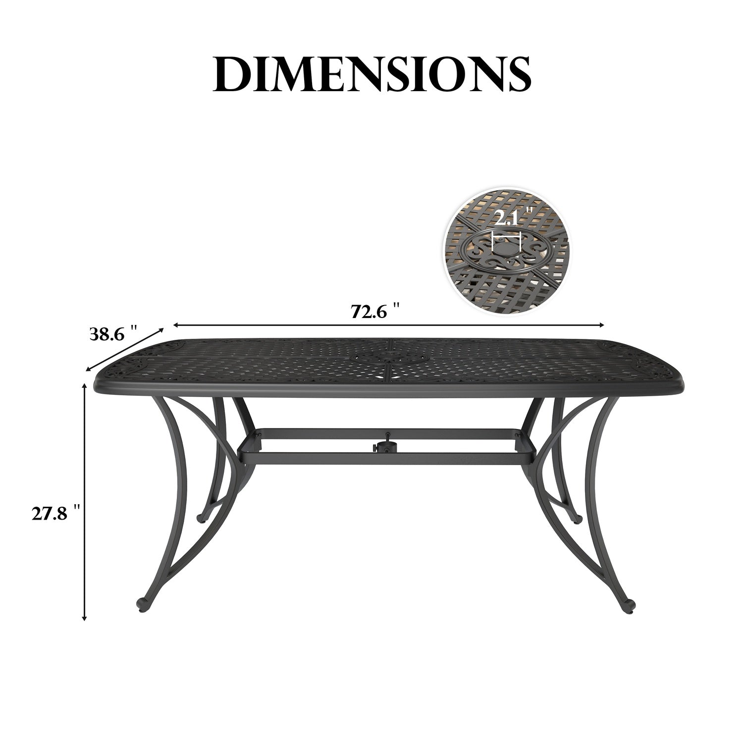 • Rectangle round cast aluminum table resists rust and corrosion, it can weather the harshest weather conditions.
