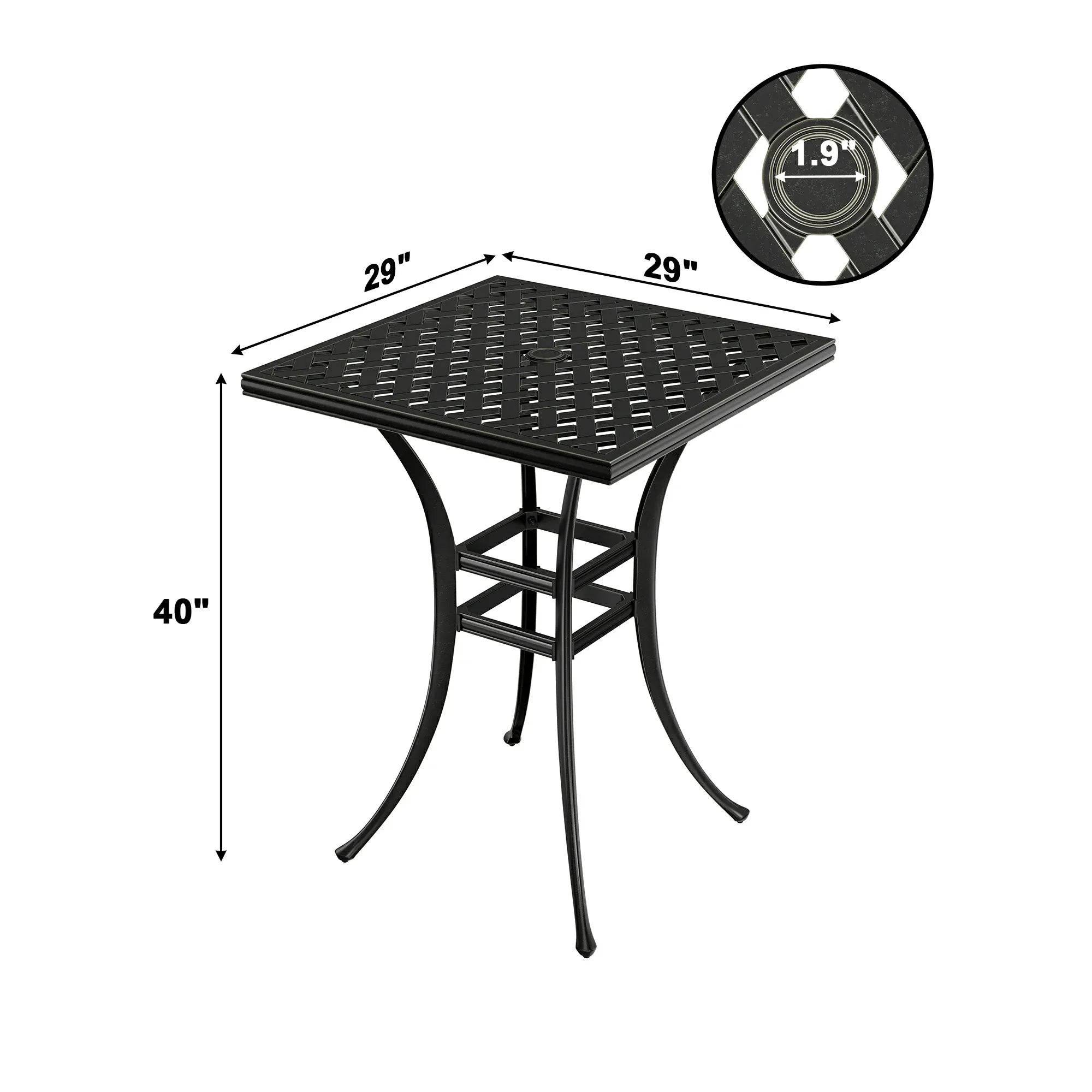 5. Generous Space for Gatherings: With dimensions of 29" L x 29" W x 40" H, our table comfortably accommodates 2 to 4 people, providing ample room for intimate conversations and memorable dining experiences under the stars.