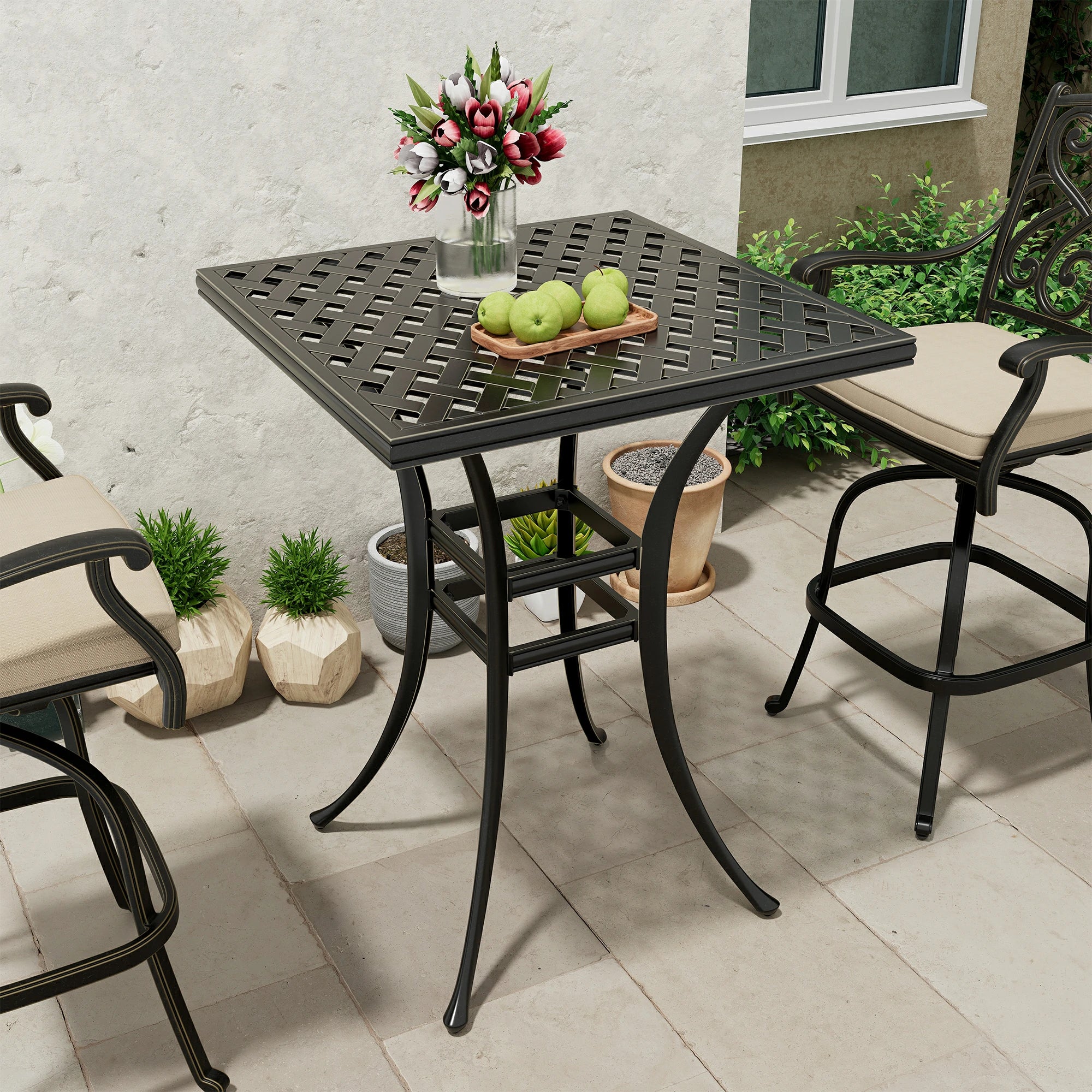 2. Exceptional Durability: Crafted from premium cast aluminum and hand-painted for a smooth finish, this table is built to withstand the elements, ensuring years of reliable use for generations to come.