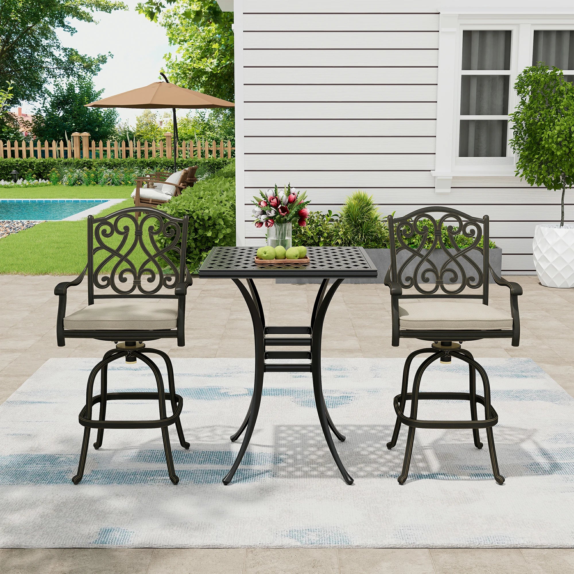 About This Product Square Outdoor Table Bar Stool 29-in W x 29-in L with Umbrella Hole