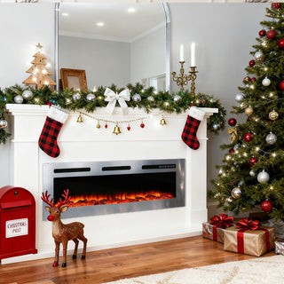 Premium 50/60 Inch Electric Wall-Mounted Fireplace Insert with Stainless Steel Surface & 12 Dynamic Flame Modes