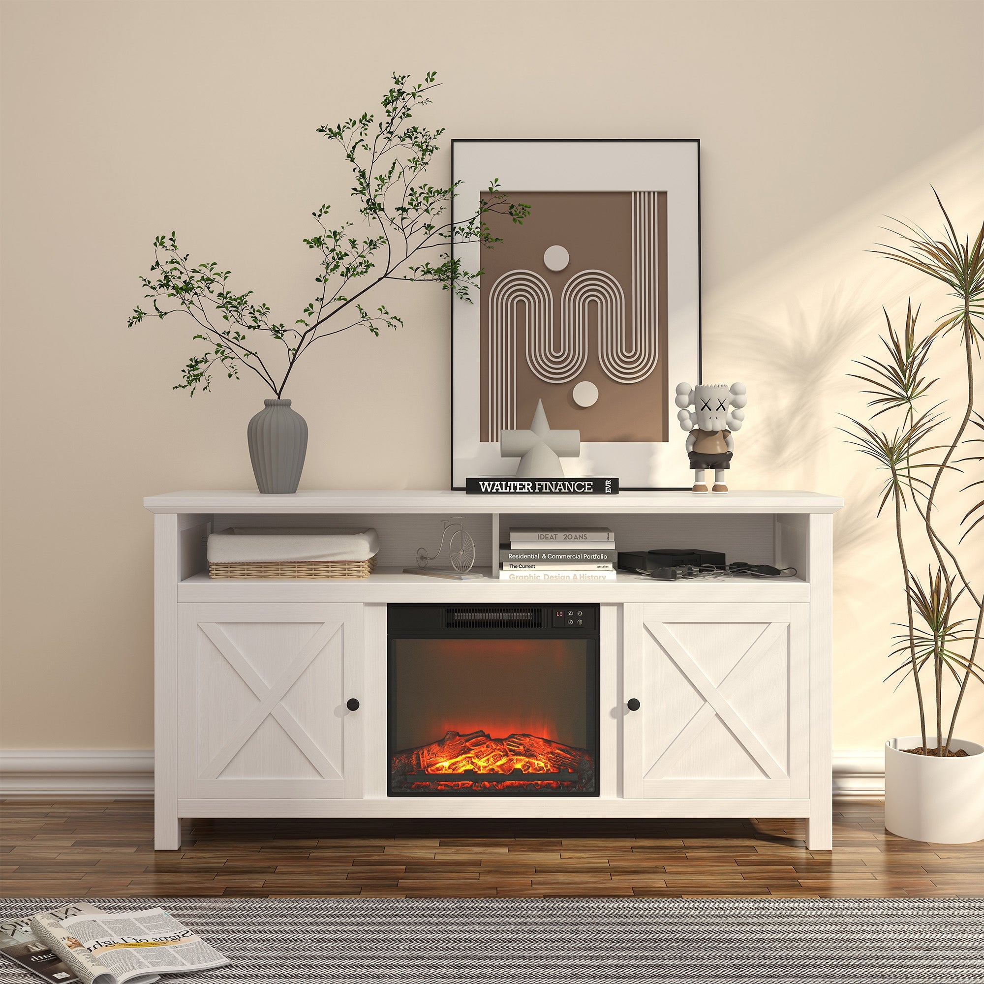 58.23 Inch W MDF TV Stand with Fan-forced Electric Fireplace
