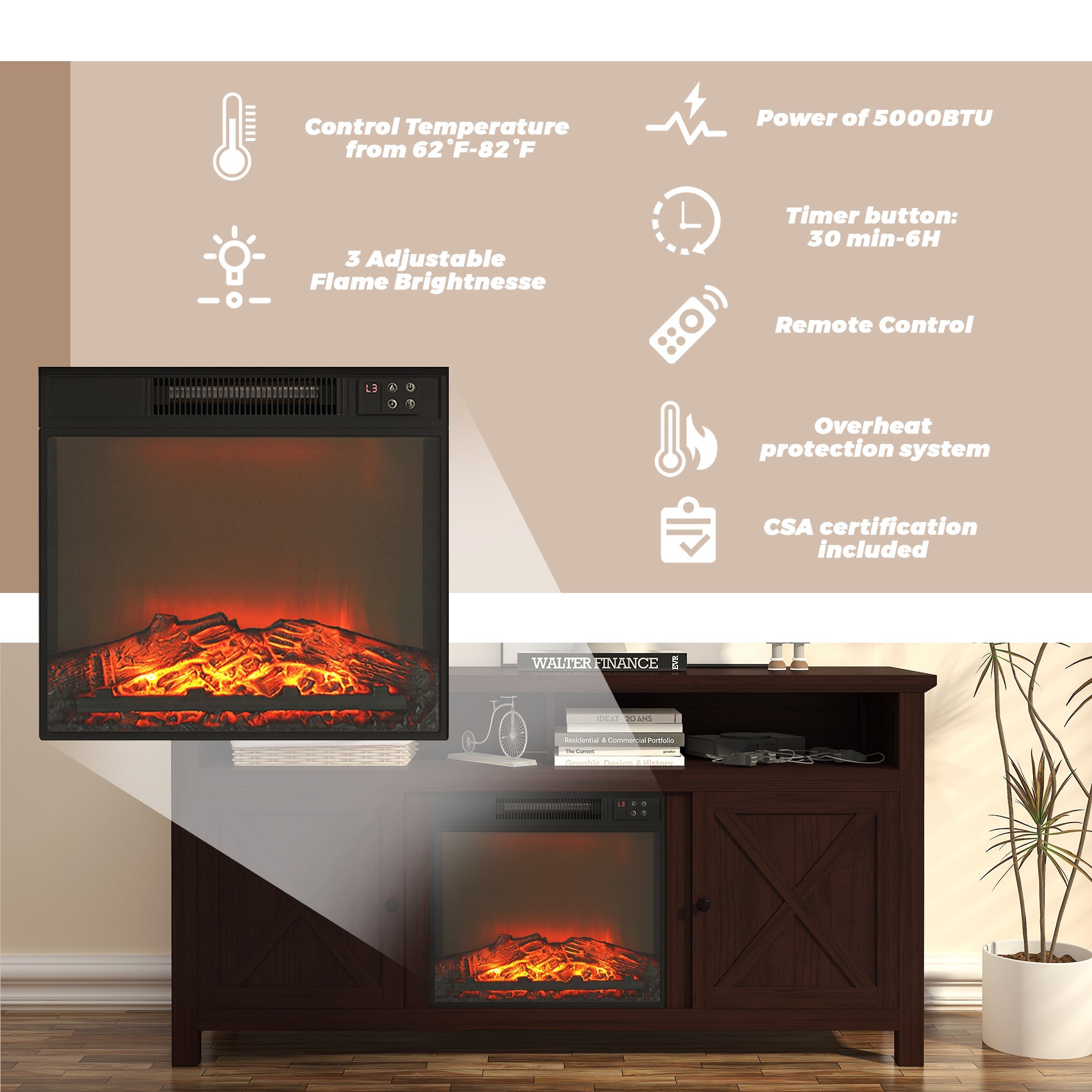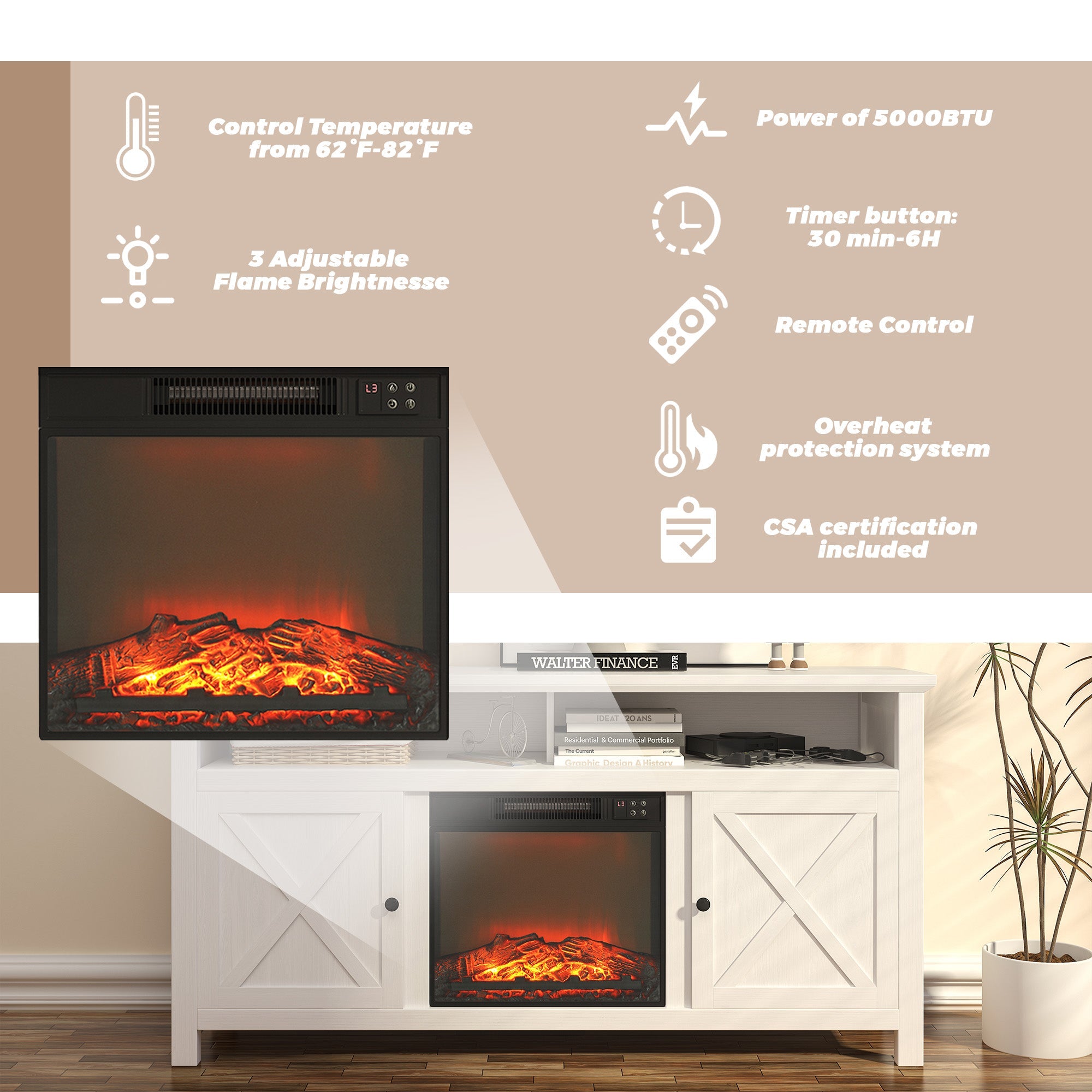 • 58" TV stand with 18" electric fireplace, maximum tabletop capacity 65lbs