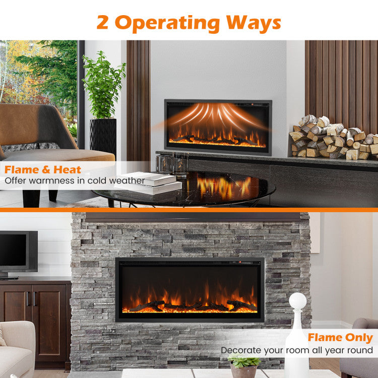 Electric Fireplace in-Wall Recessed with Remote Control and Adjustable Color and Brightness