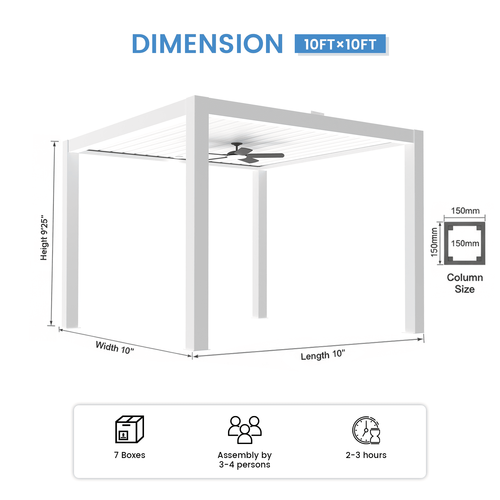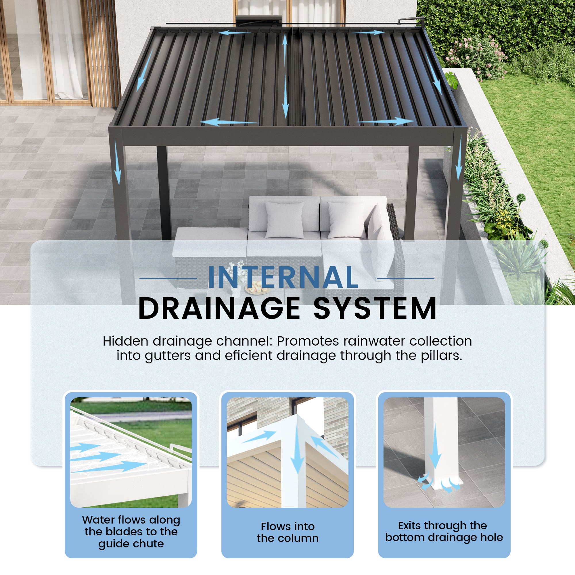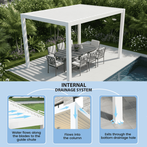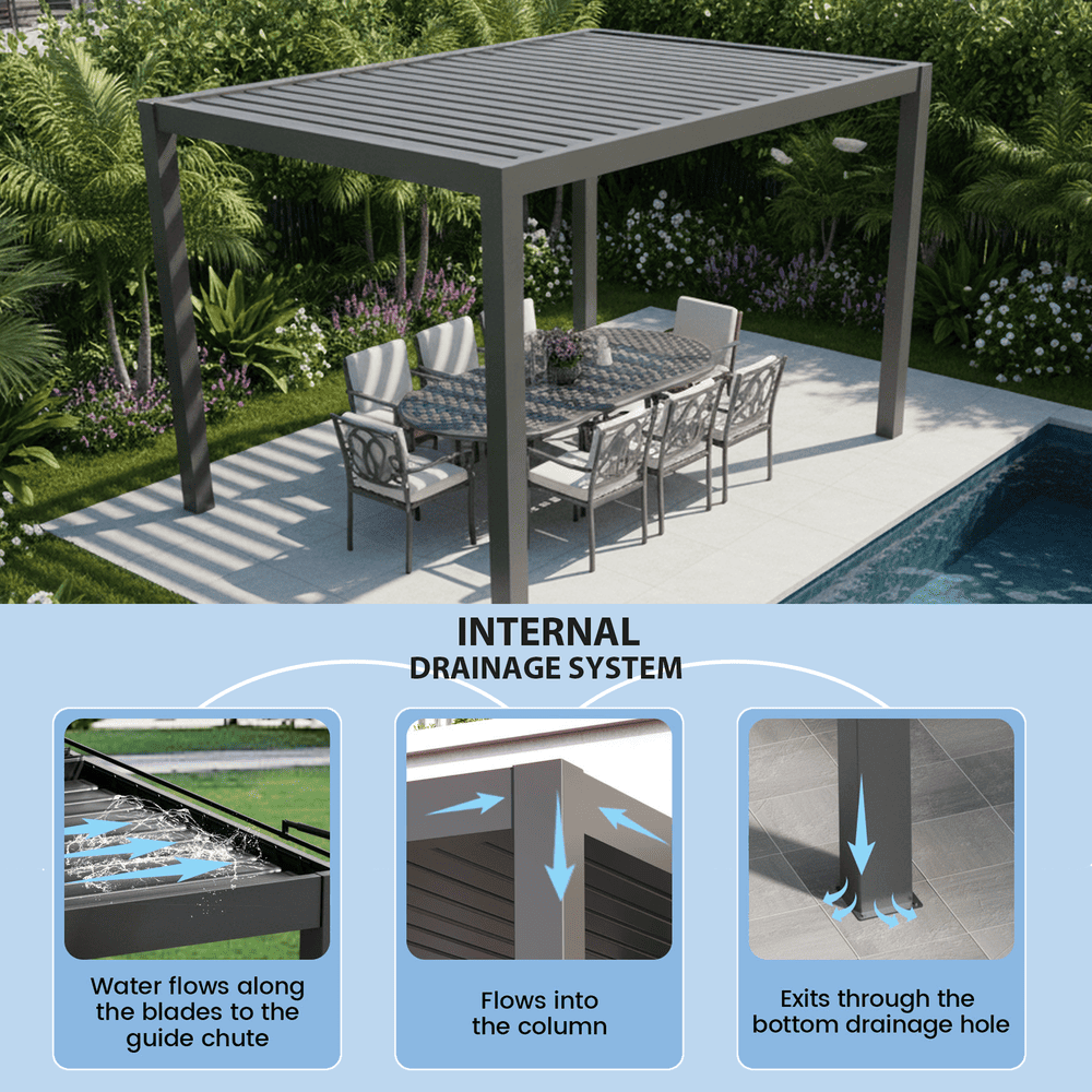 • Adjustable Louvered Roof: Enables adjustment from 0 to 100 degrees for precise light control.
