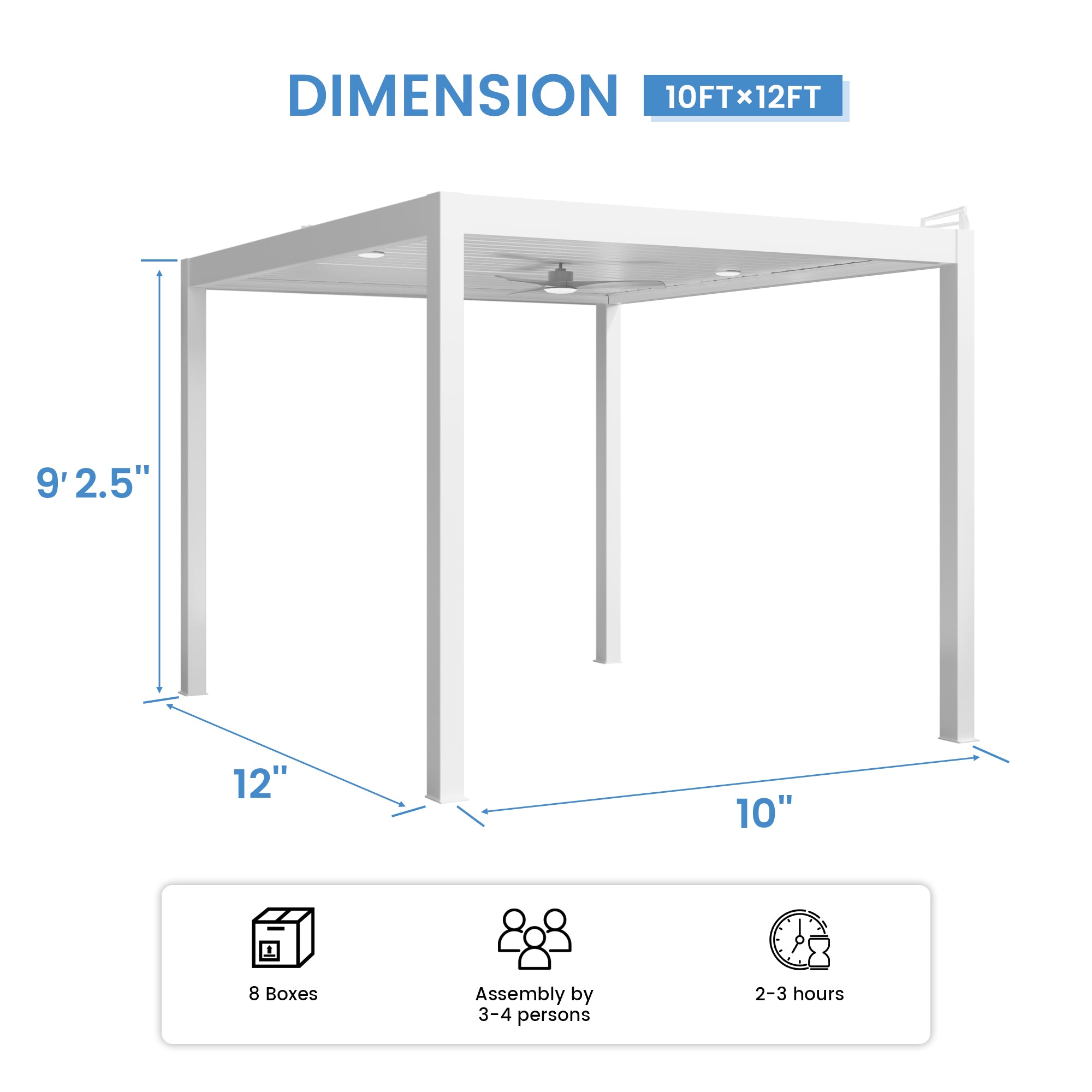 • Sturdy Construction: A robust powder-coated aluminum frame resists fading, rust, and corrosion, with the pergola capable of withstanding wind speeds up to 120 mph.