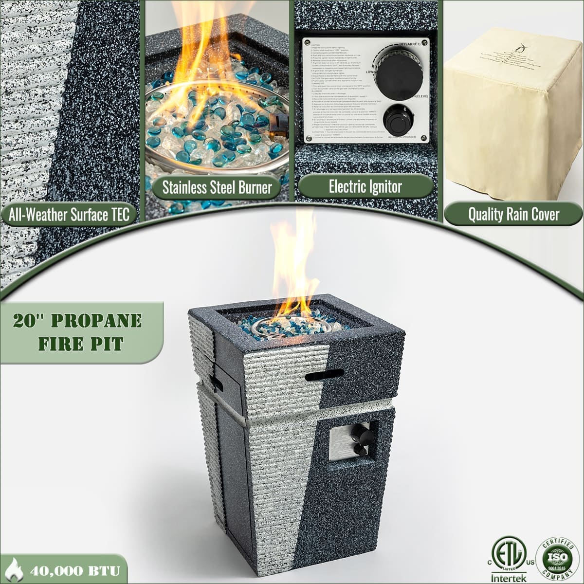 Outdoor Concrete Fire Pit Column Propane Fire Pit Patio Gas Fire Pit