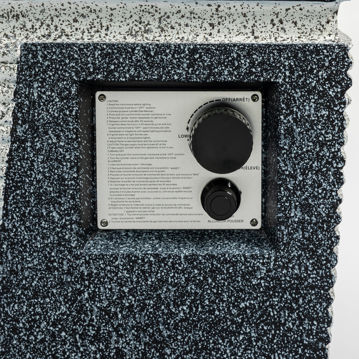 • Instant warmth, versatile: Unleash the charm of our outdoor square concrete fire pit. With its powerful heat output, it quickly dispels the evening chill and creates a cozy and pleasant haven for relaxing and socializing. Its user-friendly integrated ignition and control knob ensures smooth operation without complicated settings. It can easily switch between fire pit and practical outdoor table, making every moment outdoors memorable.