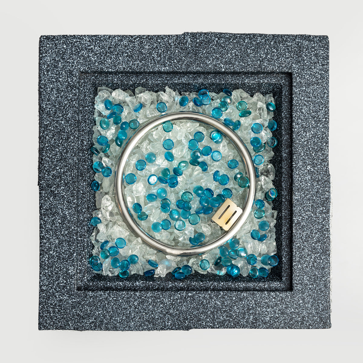 Crafted with precision, this stainless steel fire pit seamlessly combines elegance and functionality. The stainless steel burner, meticulously engineered, offers exceptional heat and corrosion resistance, ensuring long - lasting durability. Inside, the fire pit is adorned with transparent glass stones in a mesmerizing blue - and - white color scheme. When illuminated by the flames, they create a dreamlike ambiance, enhancing both the visual appeal and heat distribution.