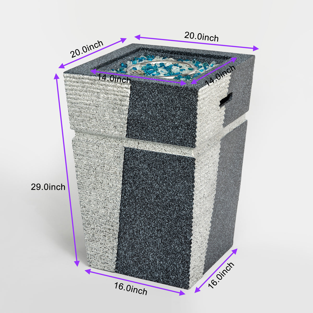 • Smart safety meets style - This fire pit blends fashion and function through its contrasting gray-blue concrete texture, creating striking visual appeal. The center area perfectly displays glass stones for both beauty and purpose. Its sturdy concrete build guarantees stability and safety, letting flames dance worry-free for complete guest relaxation.