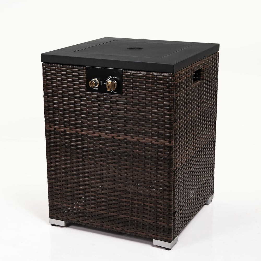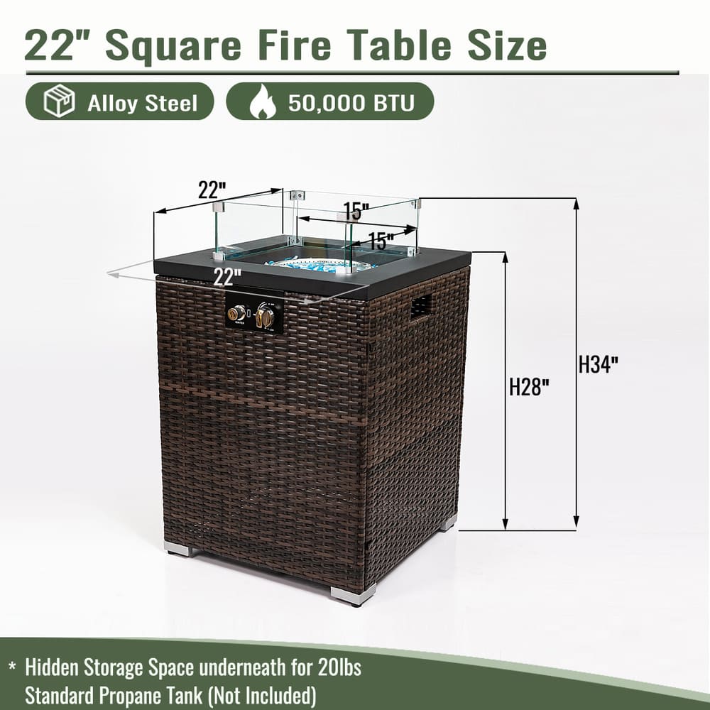 22" Propane Gas Fire Pit Table, 50000 BTU Square Steel Fire Pit with Beautiful Wicker Base for Outside Patio Deck Garden Backyard-Black
