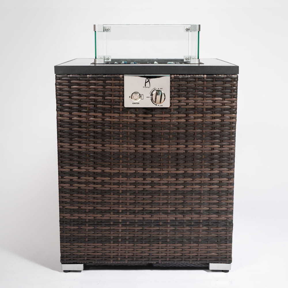 24" Propane Gas Fire Pit Table, 50000 BTU Square Fire Pit, Tile Tabletop with Beautiful Wicker Base for Outside Patio Deck Garden Courtyard-Brown