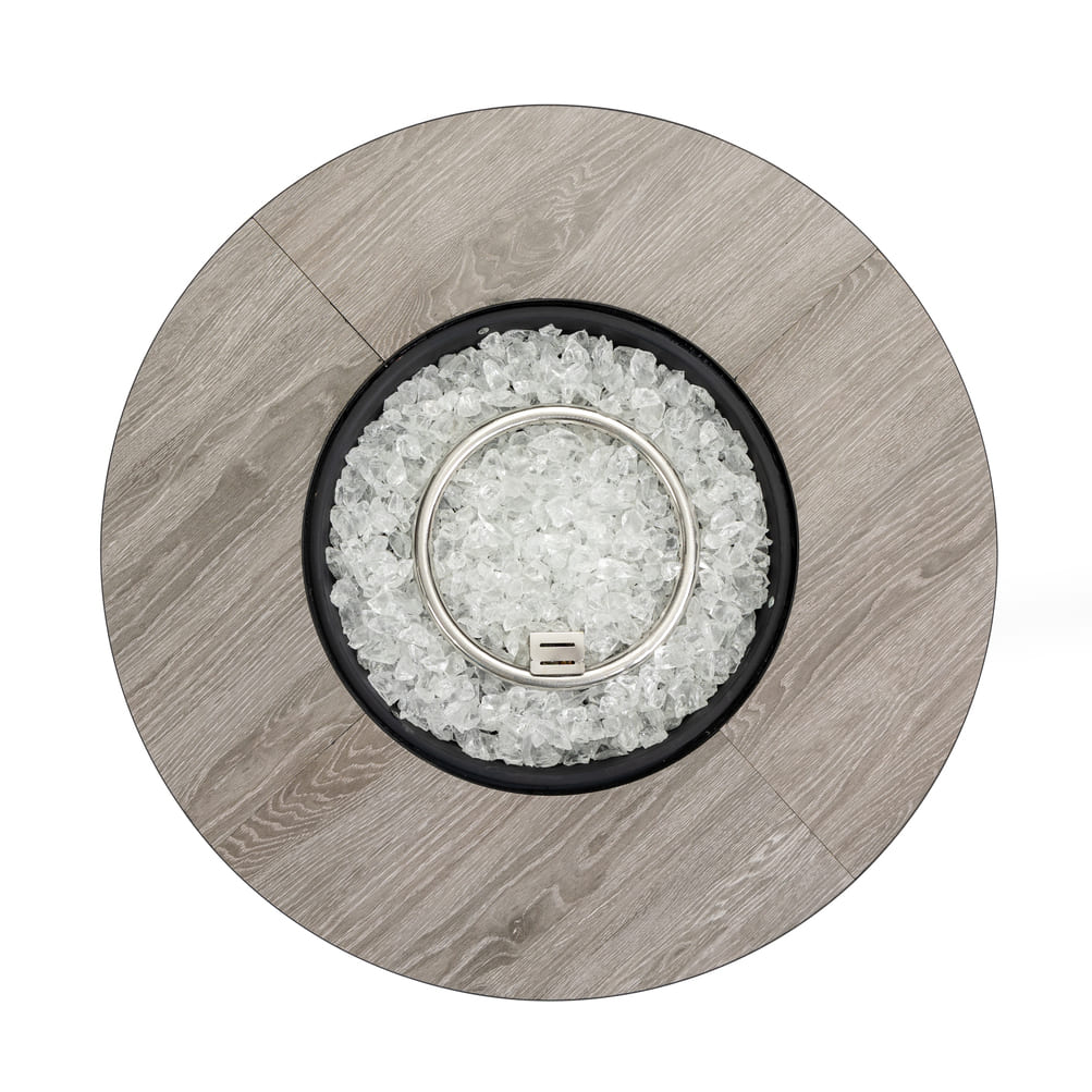 Aesthetic Appeal: White glass rocks add elegance and contrast to the fire pit, complementing the dark burner and wood - grain tabletop for a refined look.