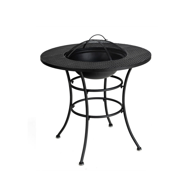 31.5 Inch Patio Fire Pit Dining Table With Cooking BBQ Grate