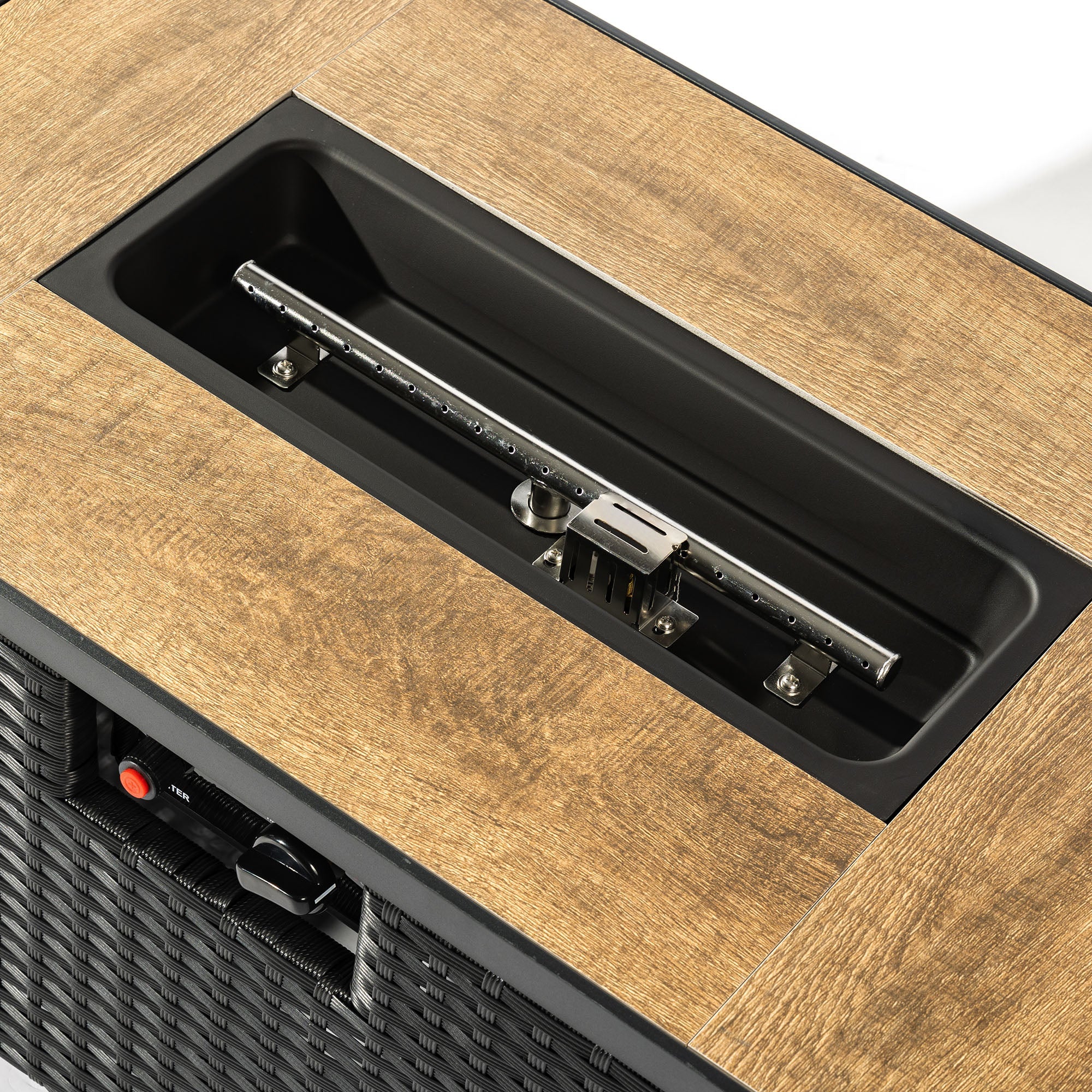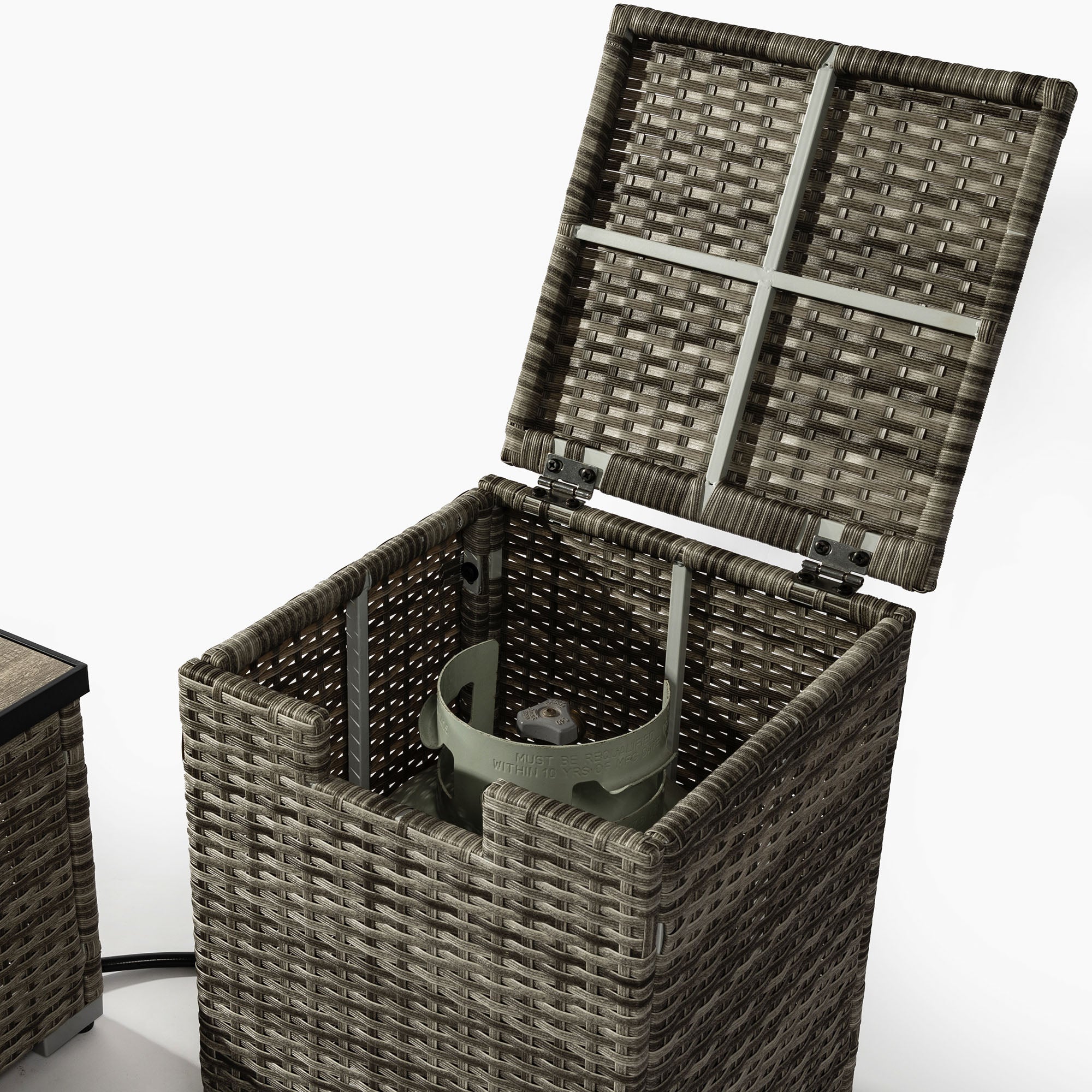 • Stunning New Hue, Timeless Style: Draped in a beautiful wicker, this fire pit table makes a bold style statement in any outdoor space. The fresh, eye - catching color paired with the classic wicker texture not only adds a modern twist but also creates a harmonious look with the matching propane tank cover area, elevating your patio or garden’s aesthetic.