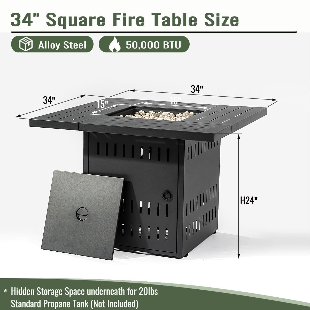 • Healthy Environment: Made of high-quality steel for long lasting use, The fire table uses propane fuel, warm and smoke-free burning, ashes and smoke won’t bother you or pollute the environment.