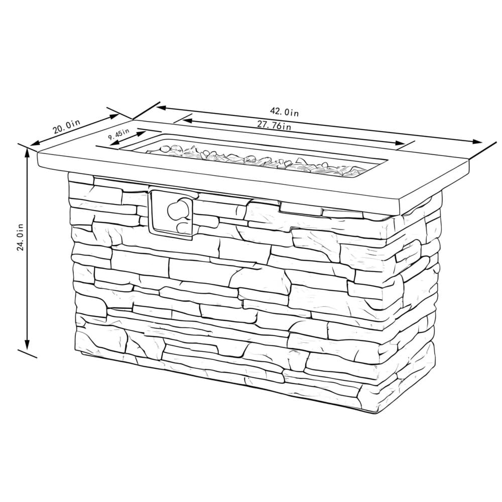 42" Propane Gas Fire Pit Table, 50000 BTU Rectangular Concrete Fire Pit for Outside Patio Deck Garden Backyard