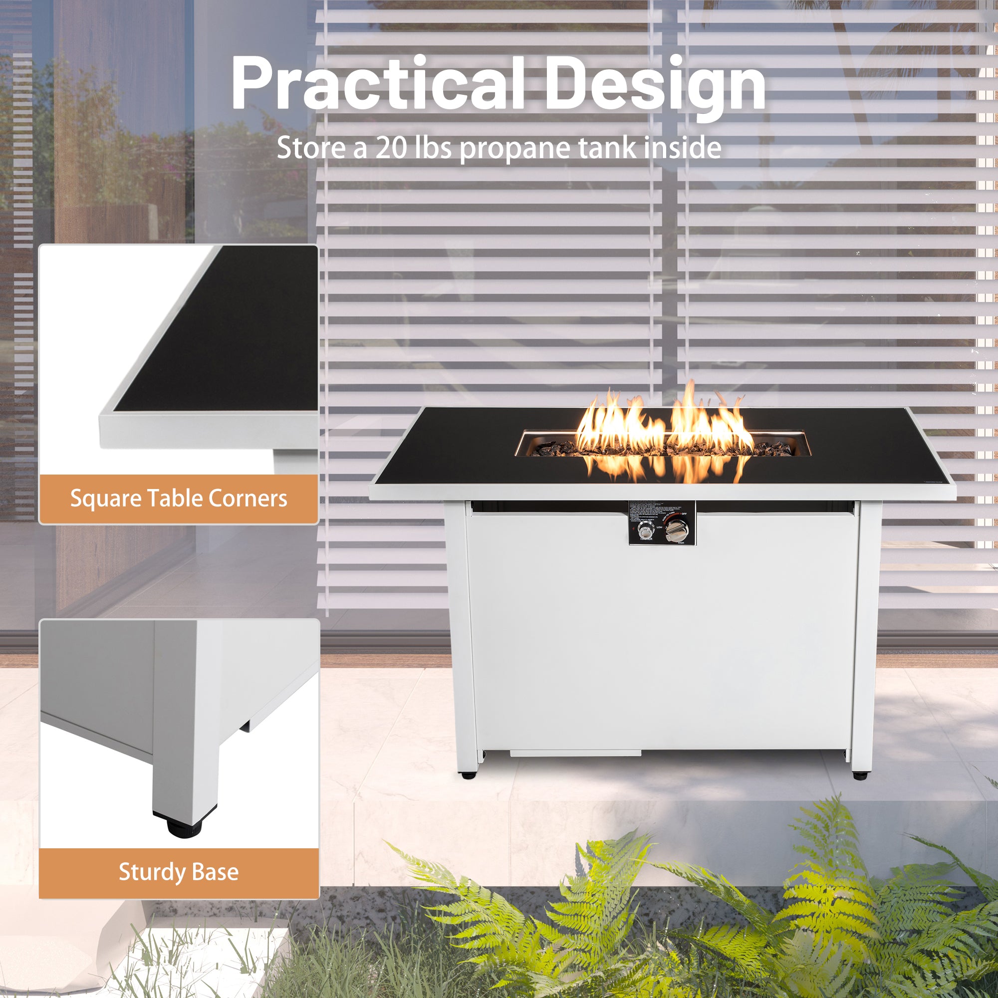 42'' W x 25'' H Steel Outdoor Propane Fire Pit Table with Lid, 50,000 BTU Patio Heating